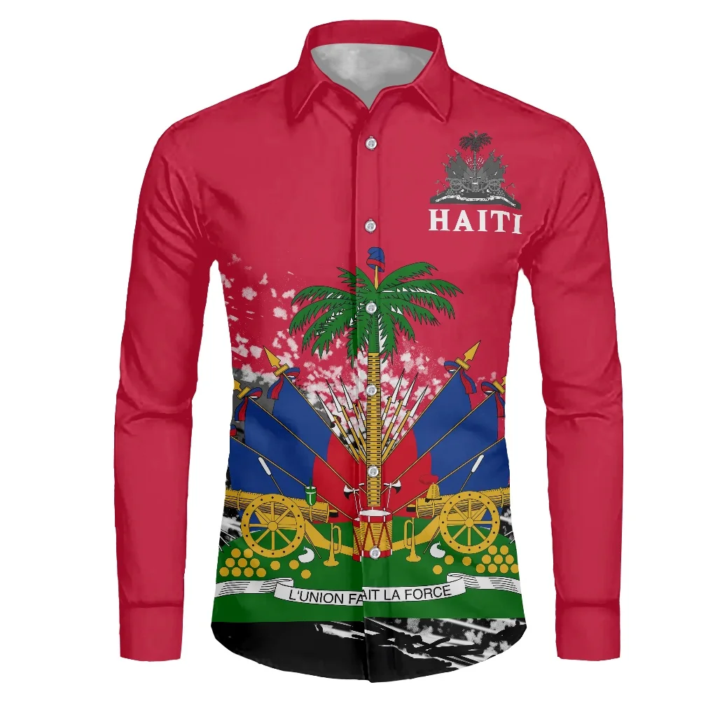 North America Haitian Pattern Print Men's Wear T Shirts Long Sleeves Stand Collar Shirts For Men Autumn 2022 Men's T-Shirt