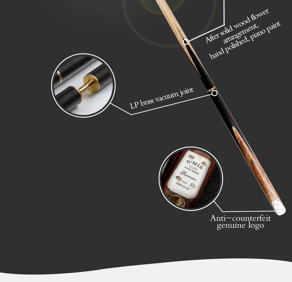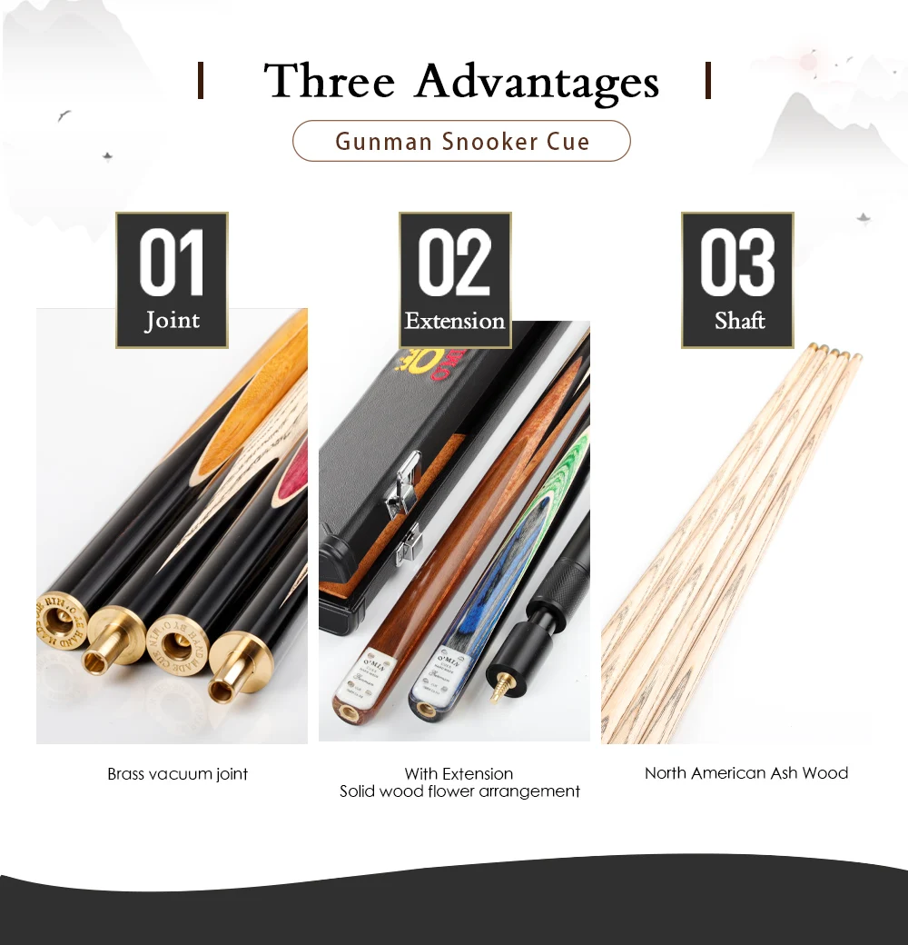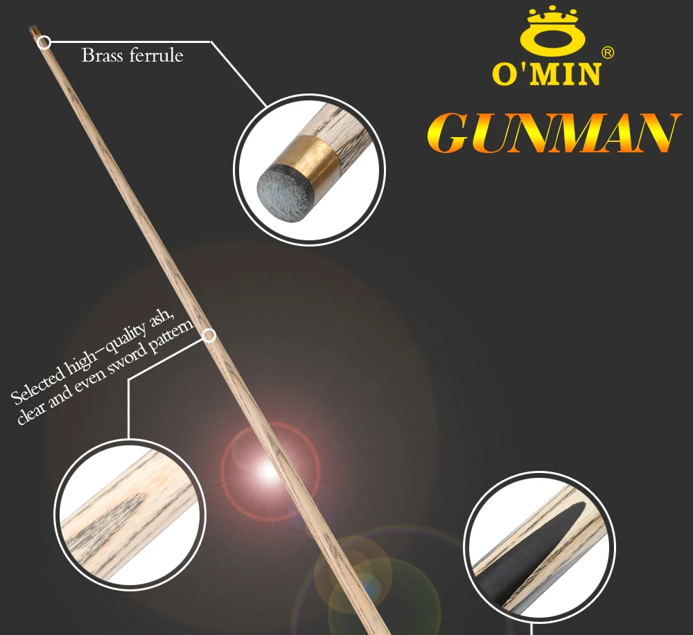 O'MIN GUNMAN 3/4 Piece One Piece Snooker Billiard Cue Kit Case with Telescopic Extension 9.5-10mm Tip Snooker Stick Cue