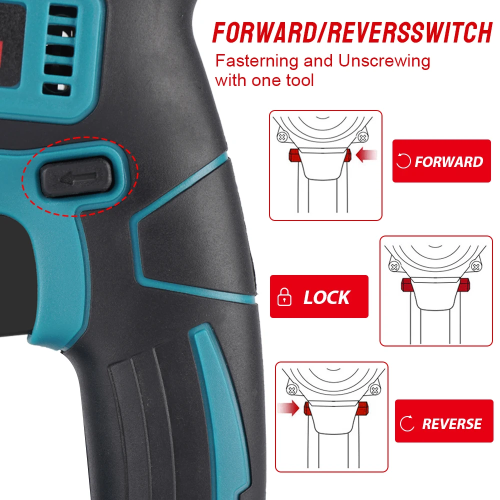 ONEVAN 1000W 8600IMP Rechargeable Electric Hammer Cordless Multifunction Hammer Impact Drill Power Tool for Makita 18V Battery