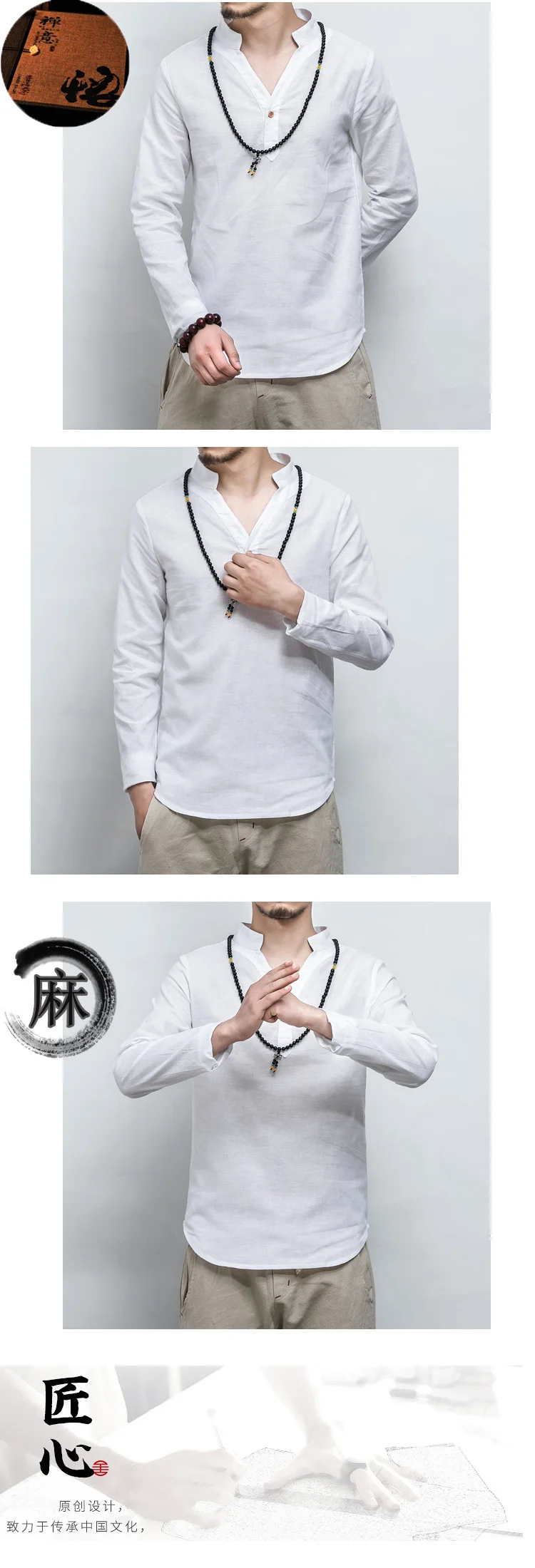 Original Chinese Style 2022 Male Linen Long-sleeved Shirt Linen Collar Plate Buckle Long-sleeved Retro Loose Male Tang Suit