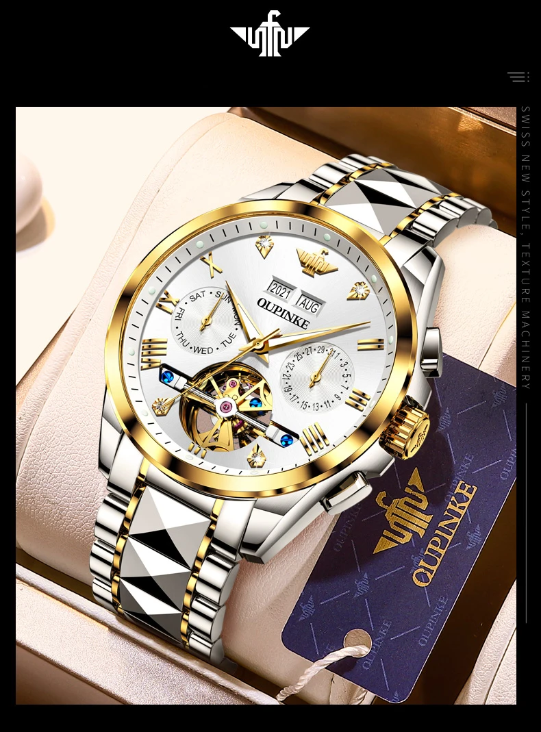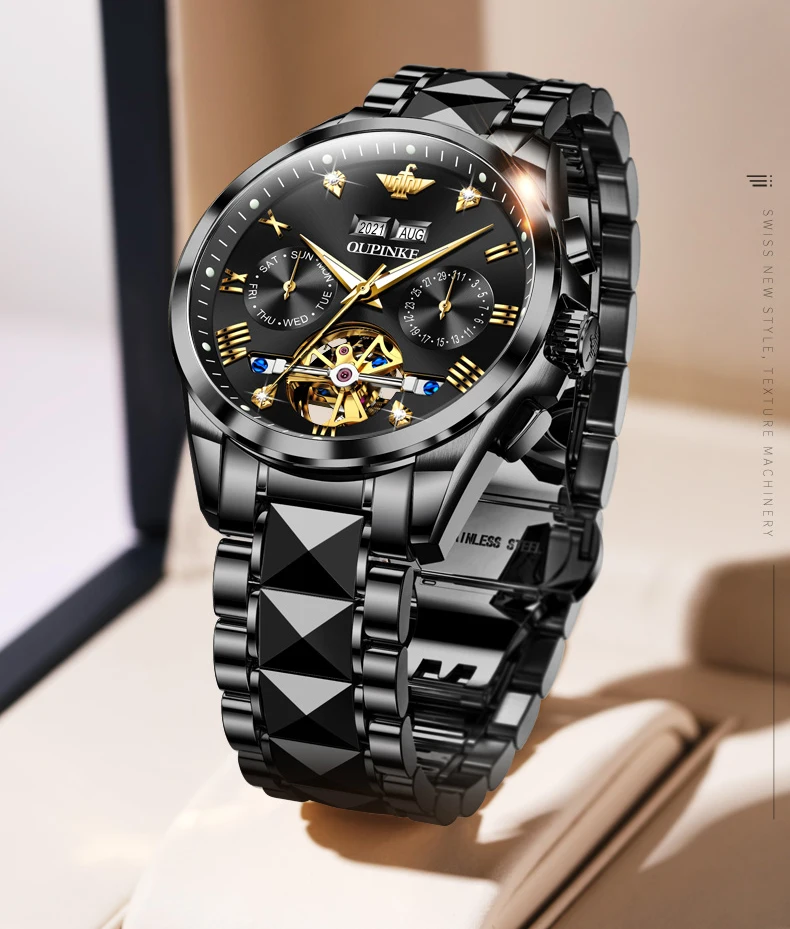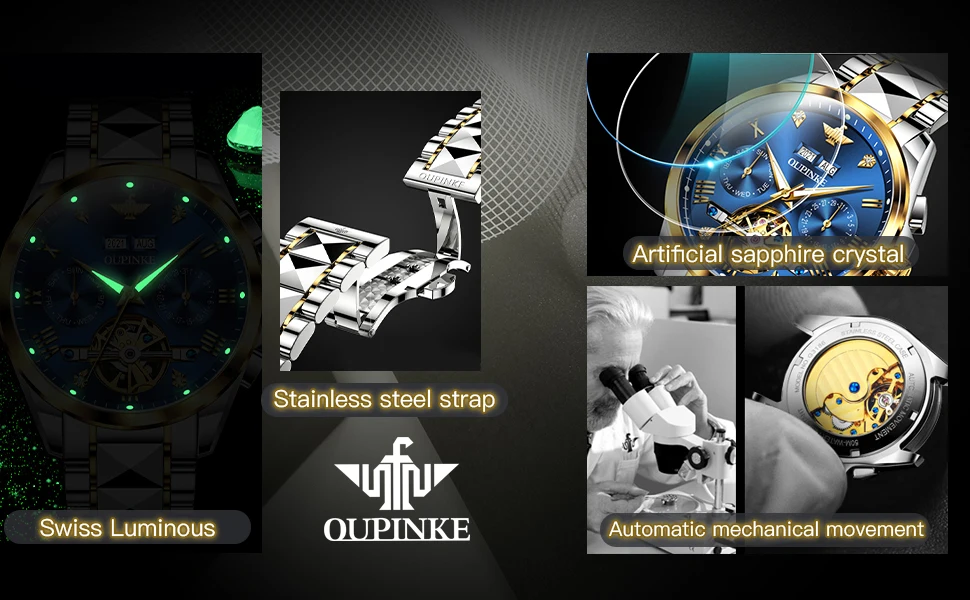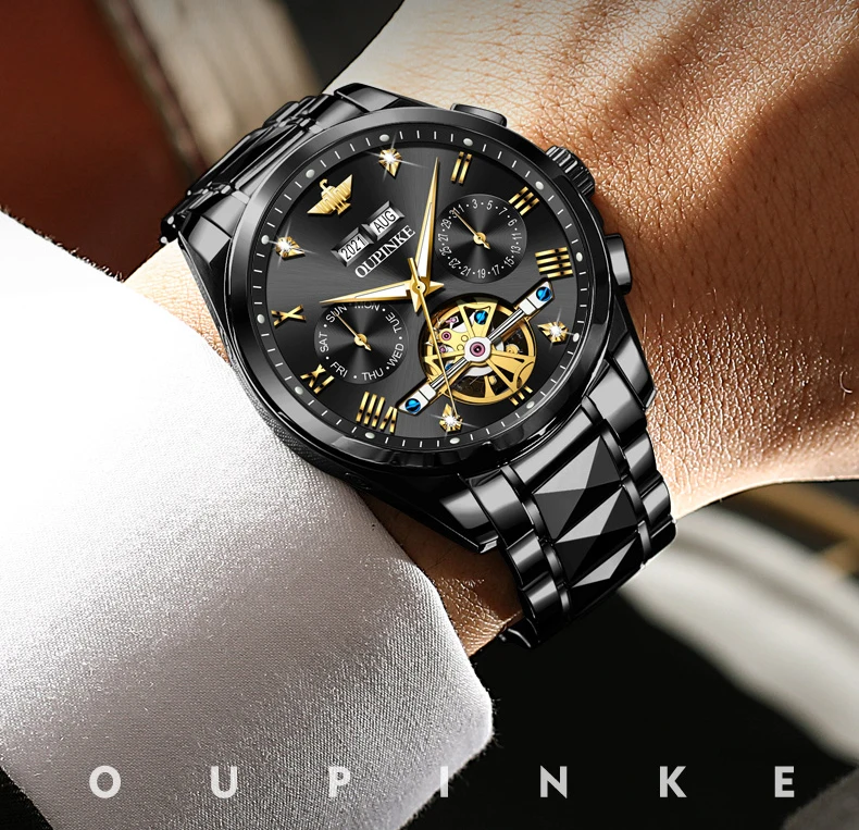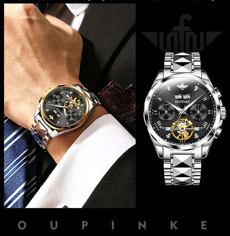 Original OUPINKE Luxury Automatic Watch for Men Mechanical Sapphire Crystal Waterproof Fashion Top Brand Hollow Wrist Watches