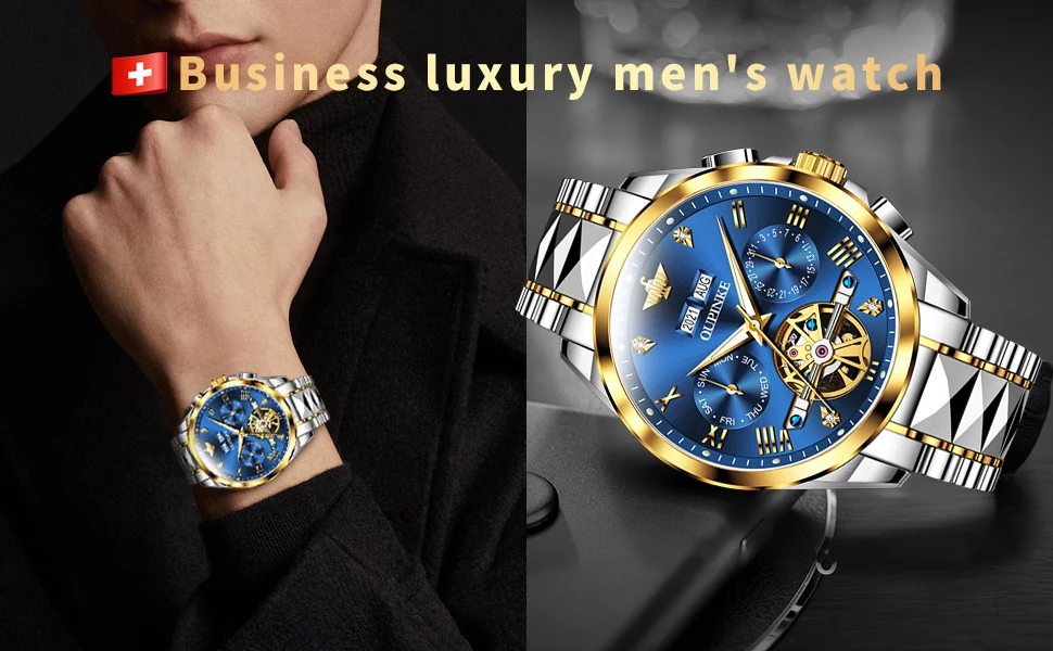 -Automatic Watches for Men: Imported durable Japanese mechanical Self-Winding movement, support self-winding and manual winding, no battery required.