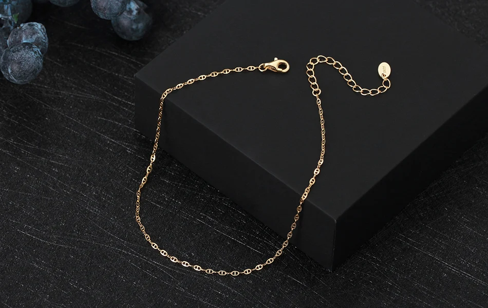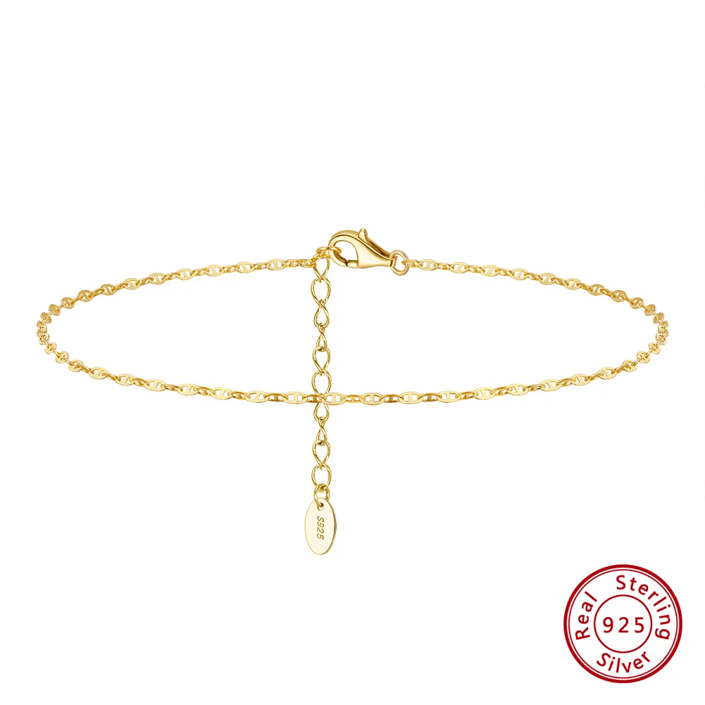 925 Sterling Silver Fashion Mariner Link Chain Anklet 14K Gold Women Foot Bracelet Ankle Straps Jewelry Gift SA24