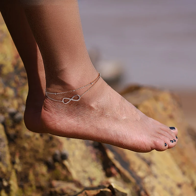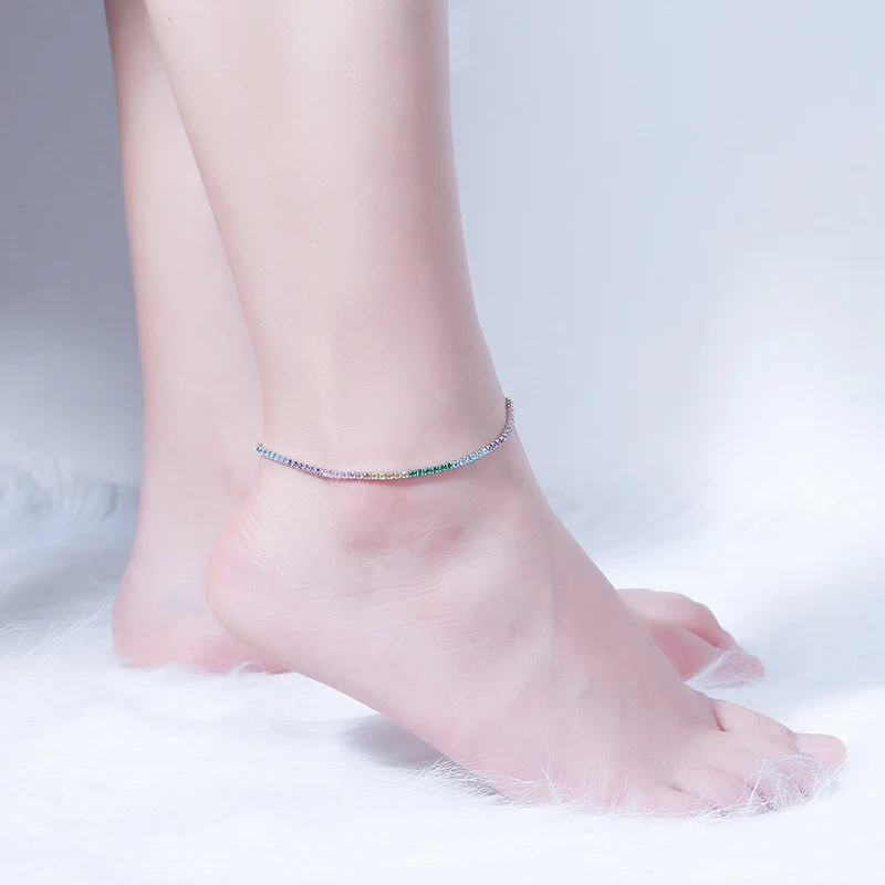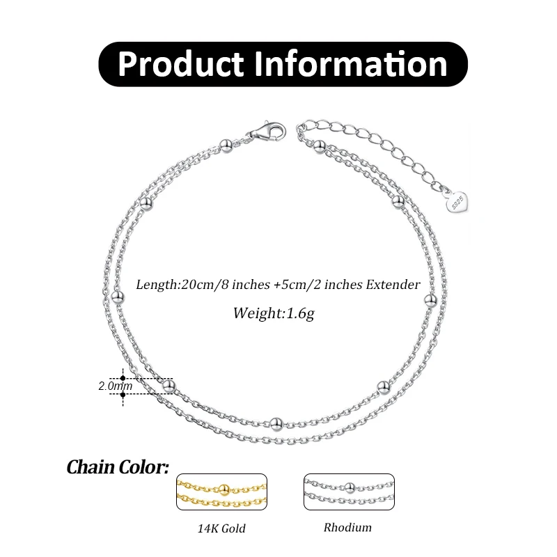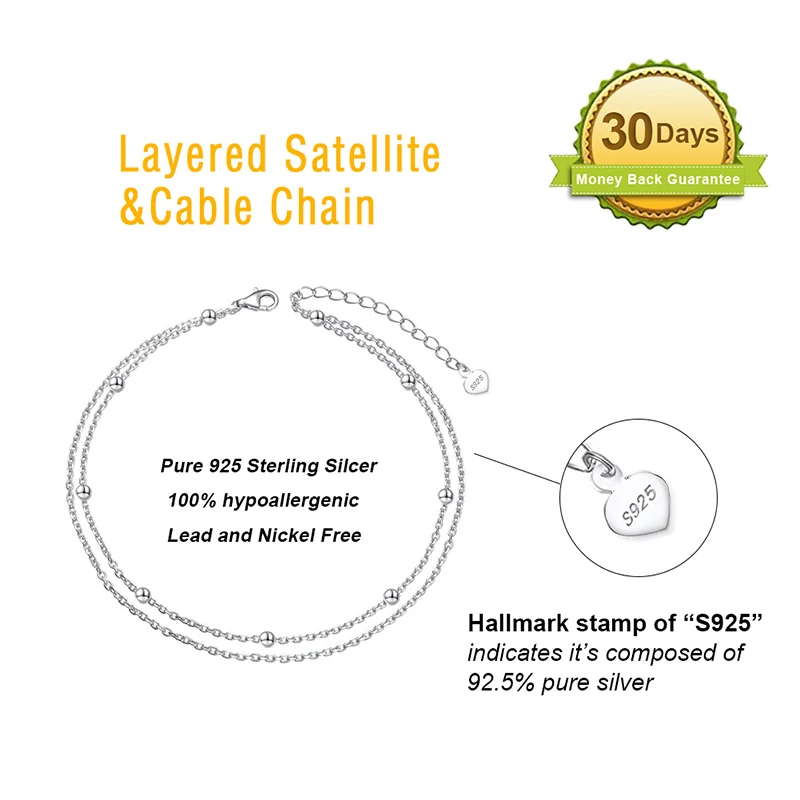 ORSA JEWELS Layered 1mm Satellite Chain Anklet 925 Silver Women Summer Foot Chain Bracelet Fashion Ankle Straps Jewelry SA14