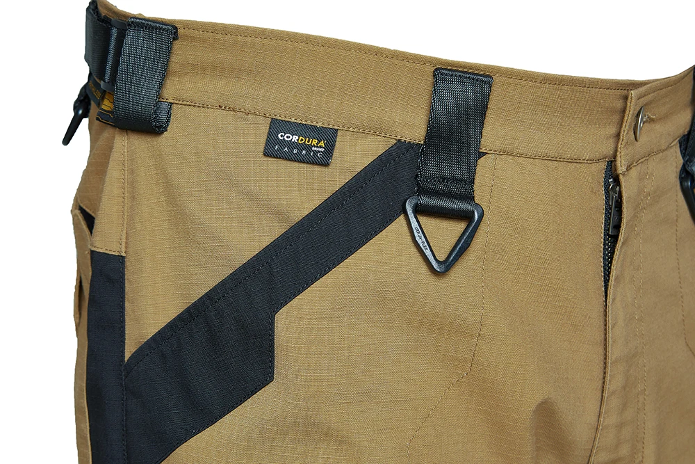 6.Knees are reinforced with multiple layers , and the surface use CORDURA fabric improve the durability.