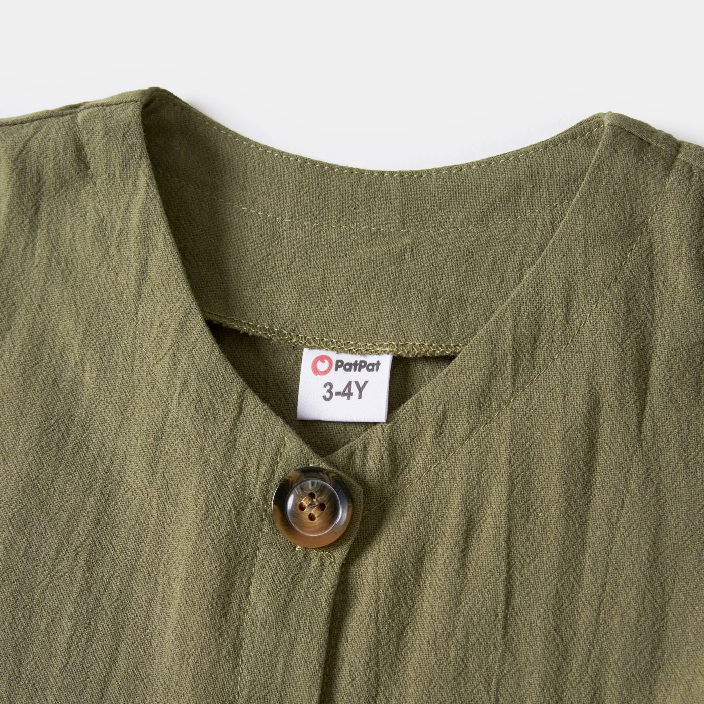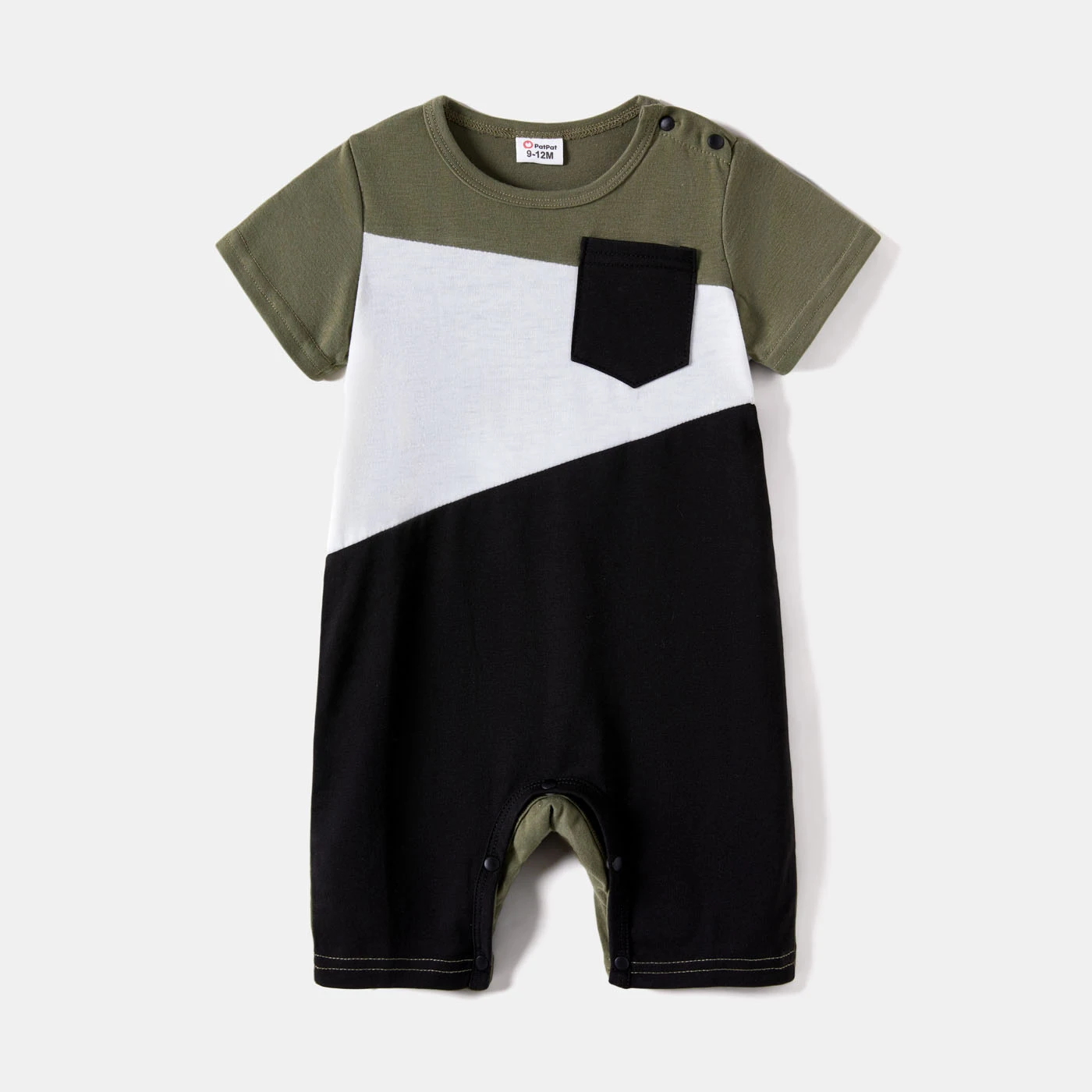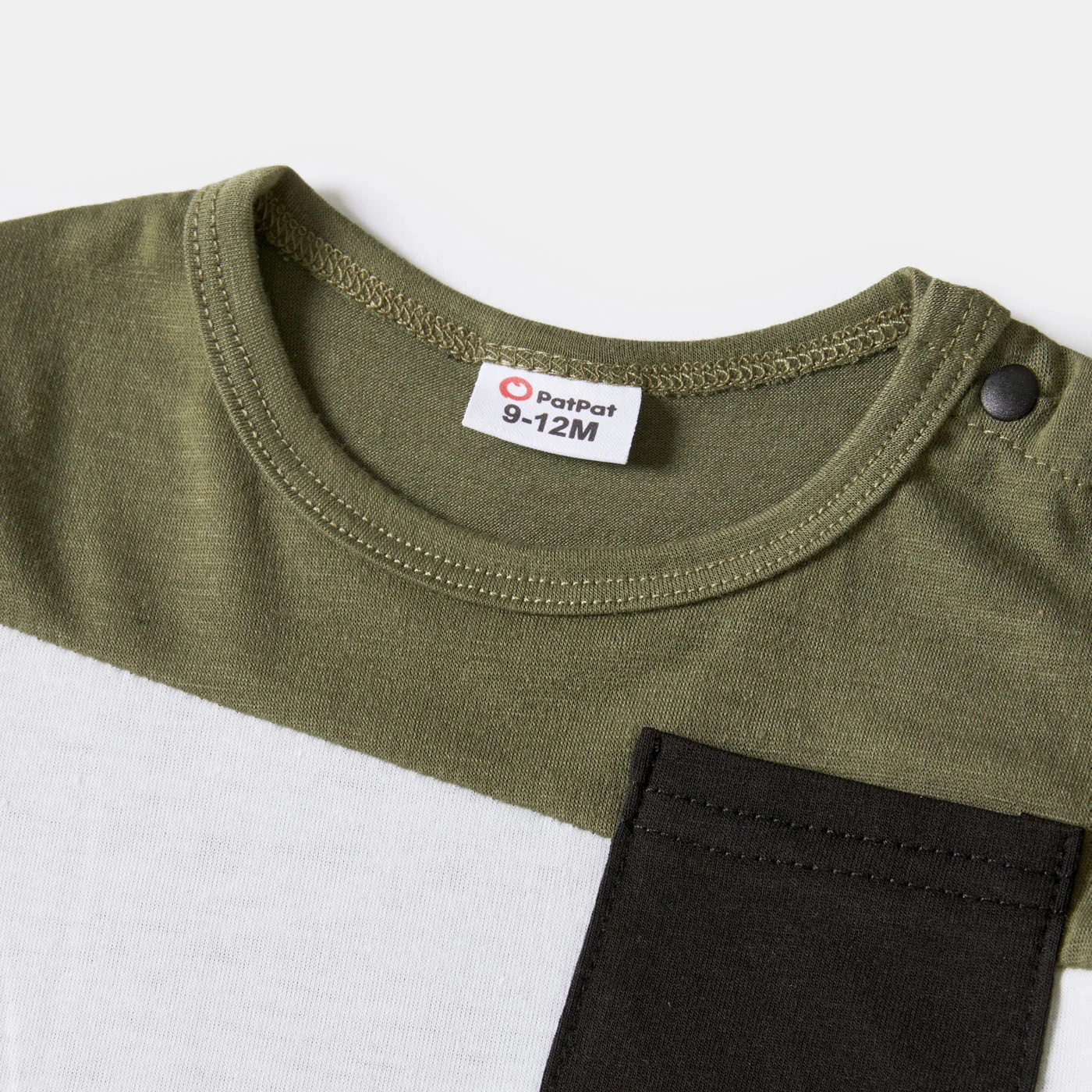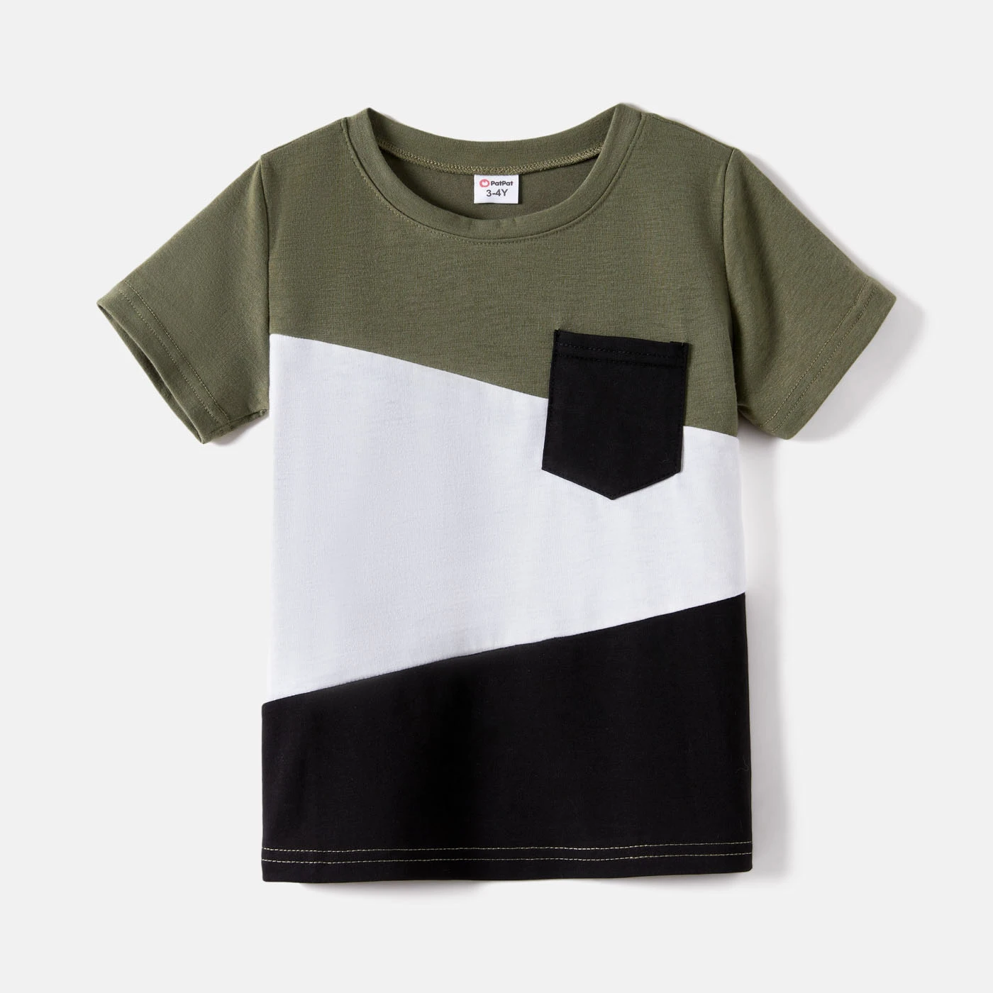 PatPat Family Matching Outfits 100% Cotton Short-sleeve Button Front Belted High Low Hem Dresses and Colorblock T-shirts Sets