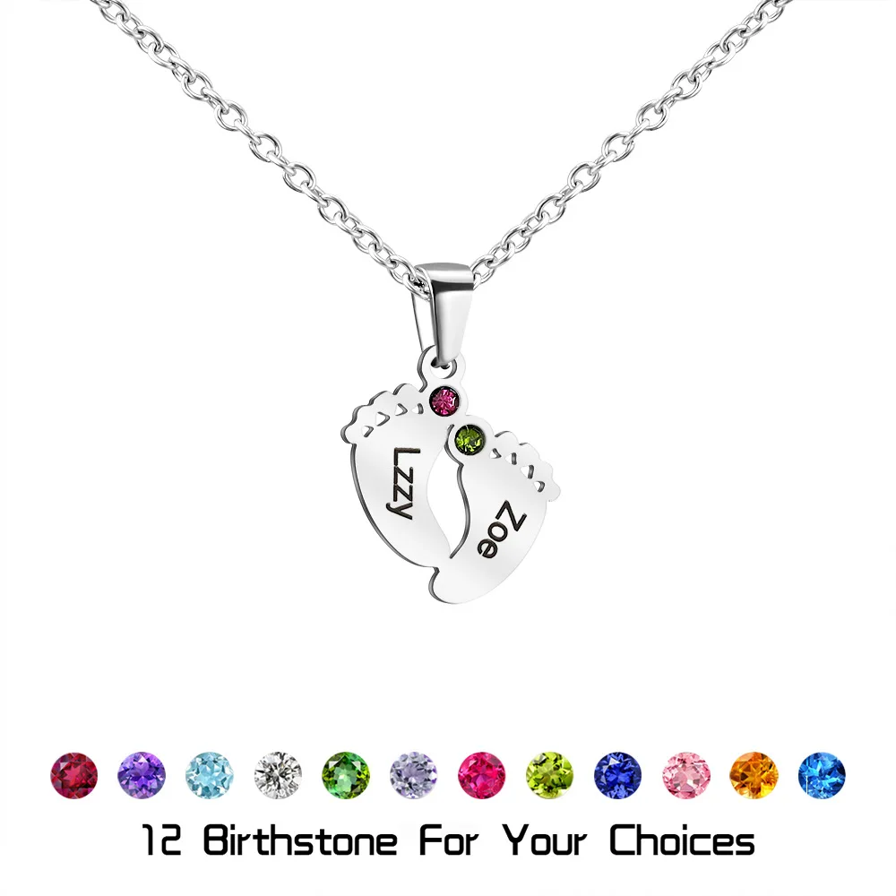Personalized Baby Feet Name Necklace with Birthstone Mothers Day Jewelry Gift Baby Feet Necklace Custom Name Necklace gift