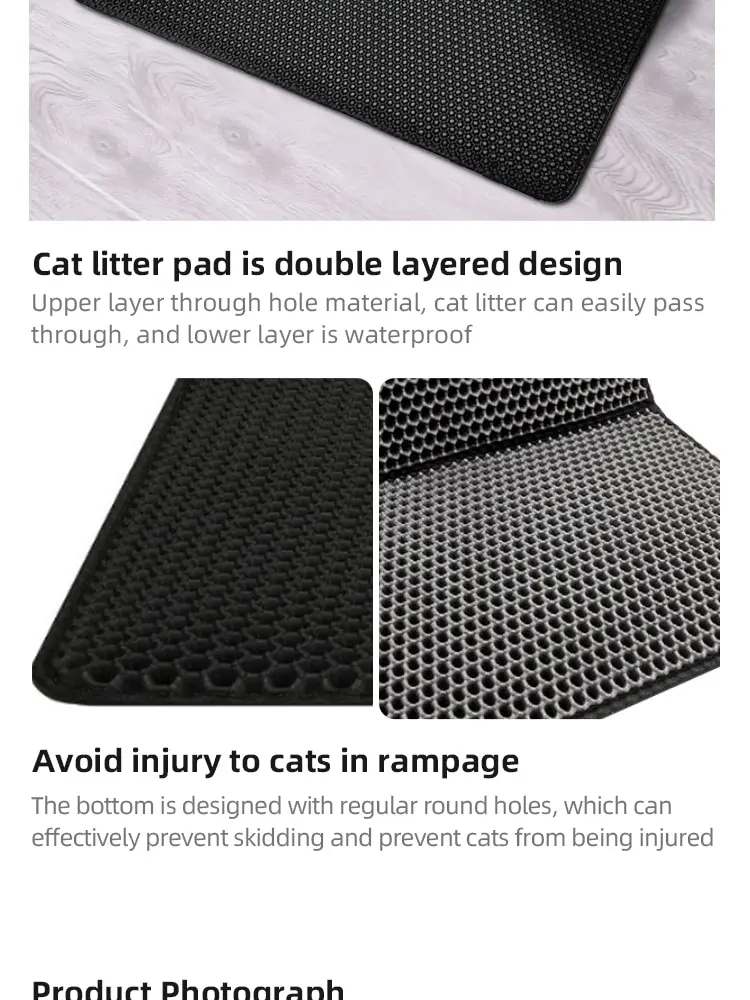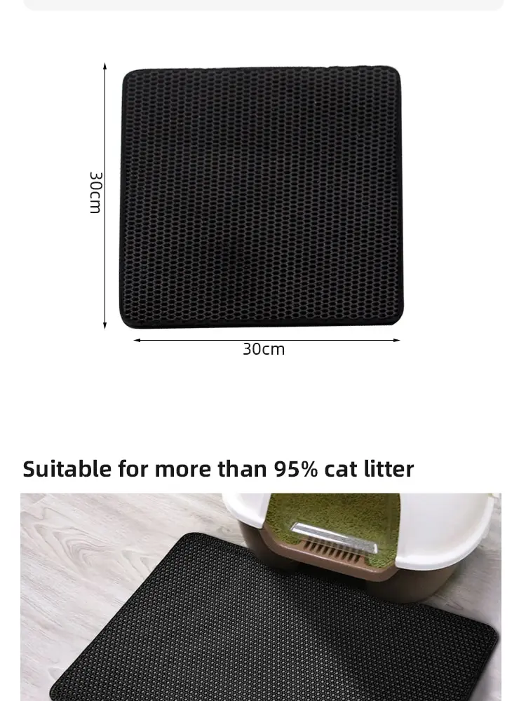 1. Suitable for more than 95% of cat litter, the upper layer is perforated so that cat litter can easily pass through, and the lower layer is waterproof so that cat litter, urine and other dirt can collect here