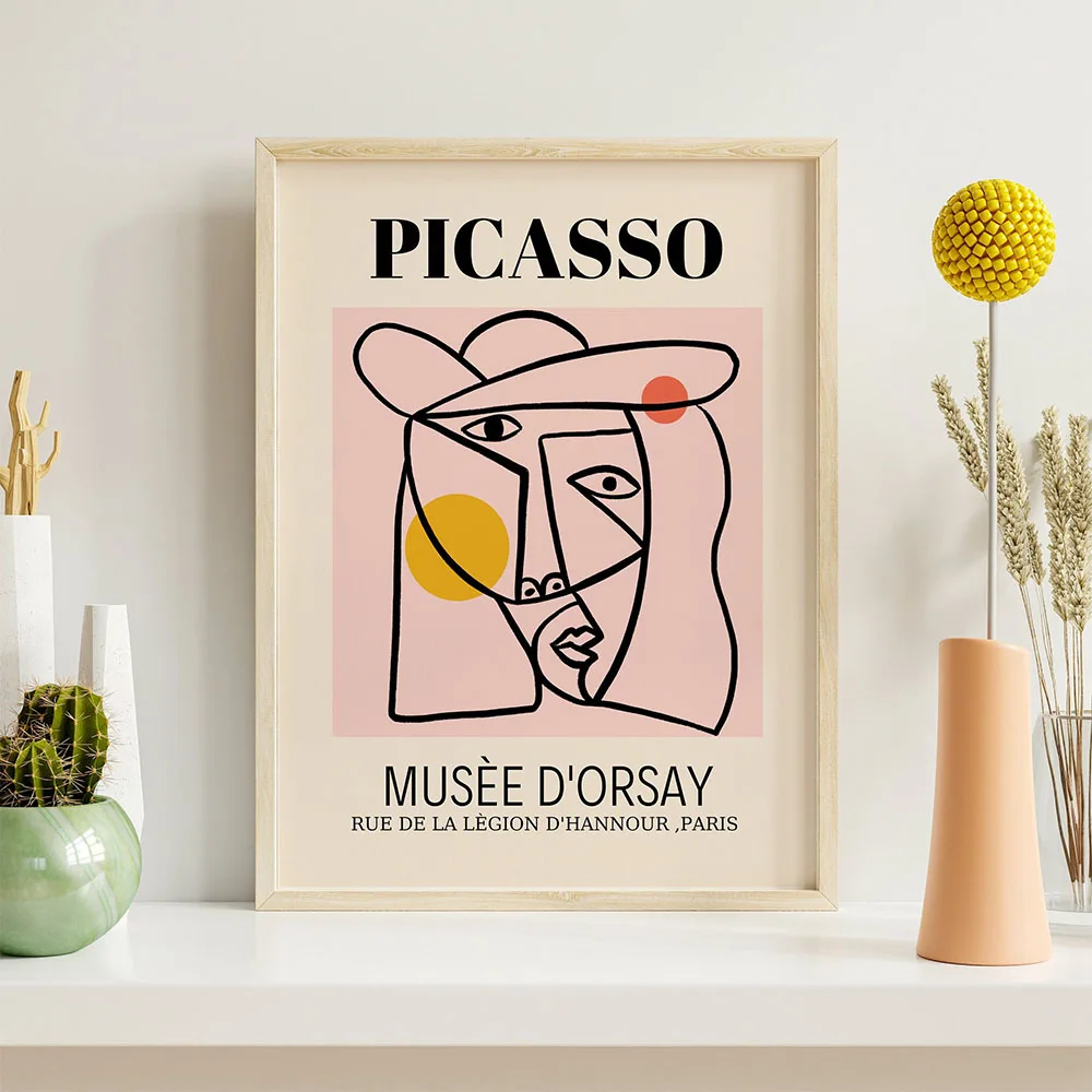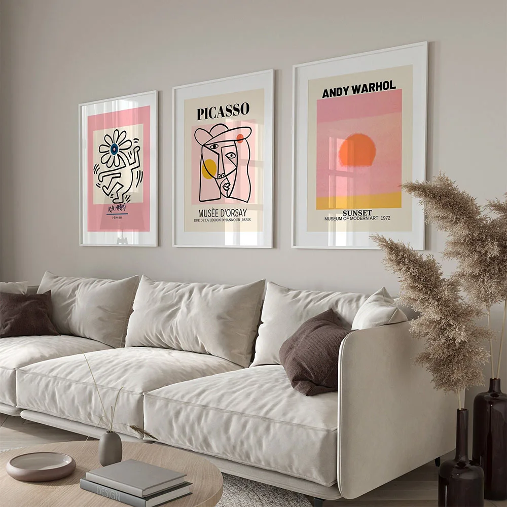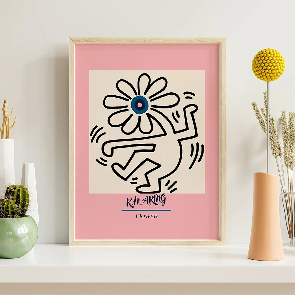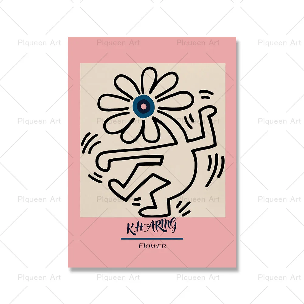 Pink Andy Sunset Picasso Woman Line Art Print Abstract Poster Keith Flower Canvas Painting Nordic Exhibition Wall Picture Decor