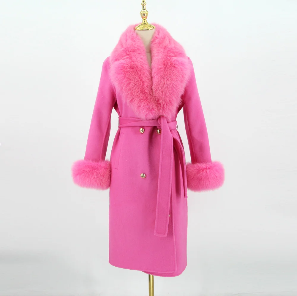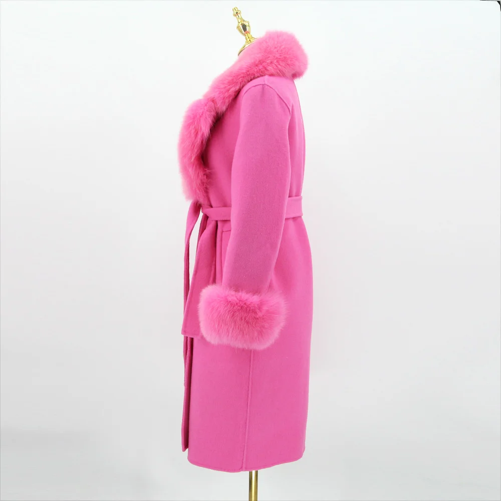 Pink Java QC22018 New Arrival Fashion Women Winter Wool Jacket With Cashmere Coat Real Fox Fur Collar And Cuff