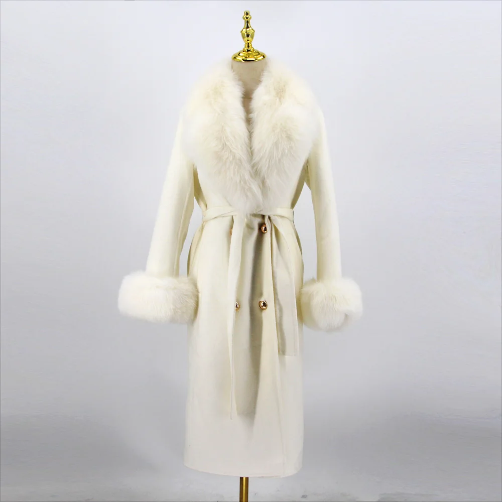 100% REAL FOX FUR, 10% CASHMERE ,90% WOOL