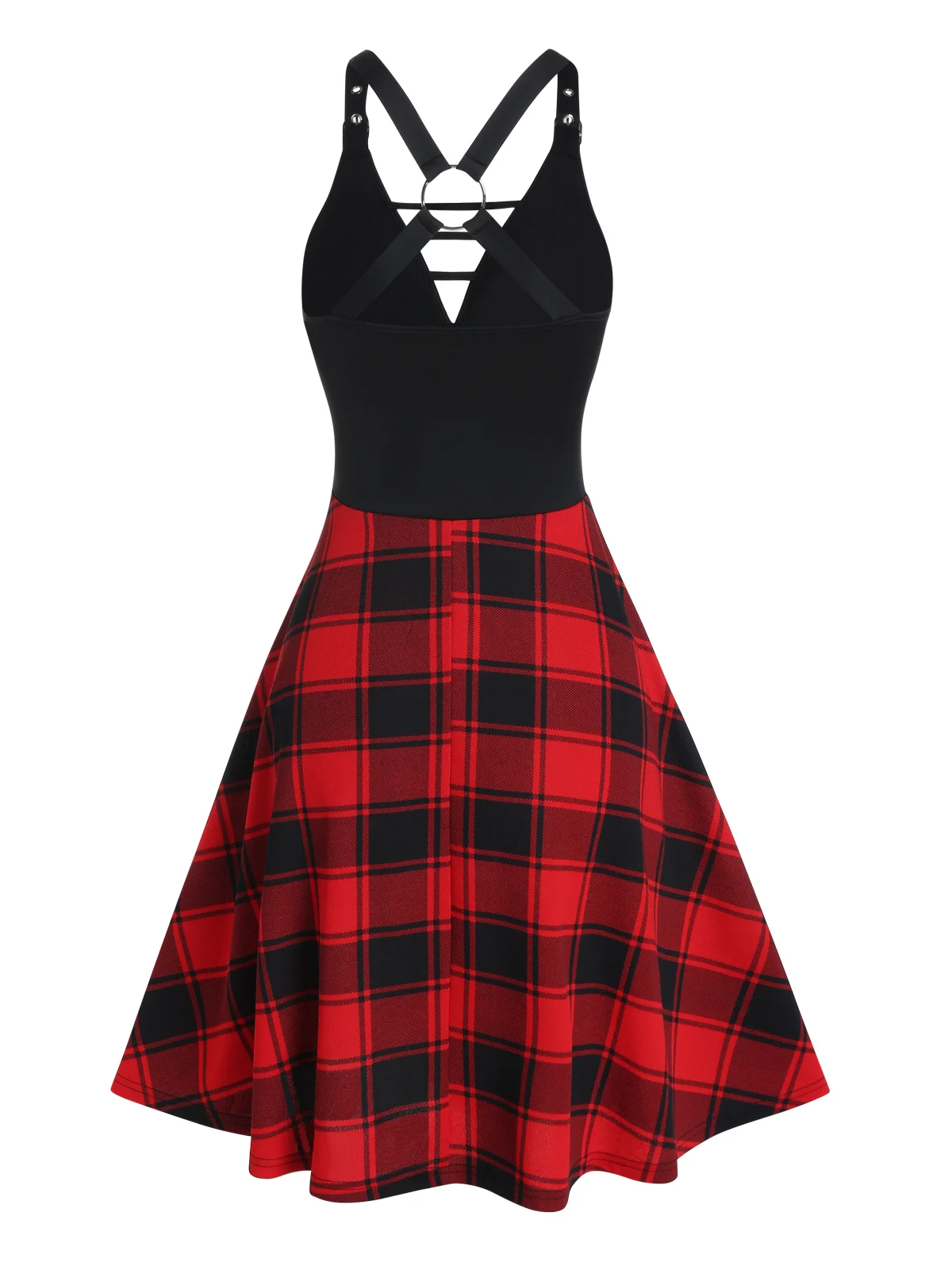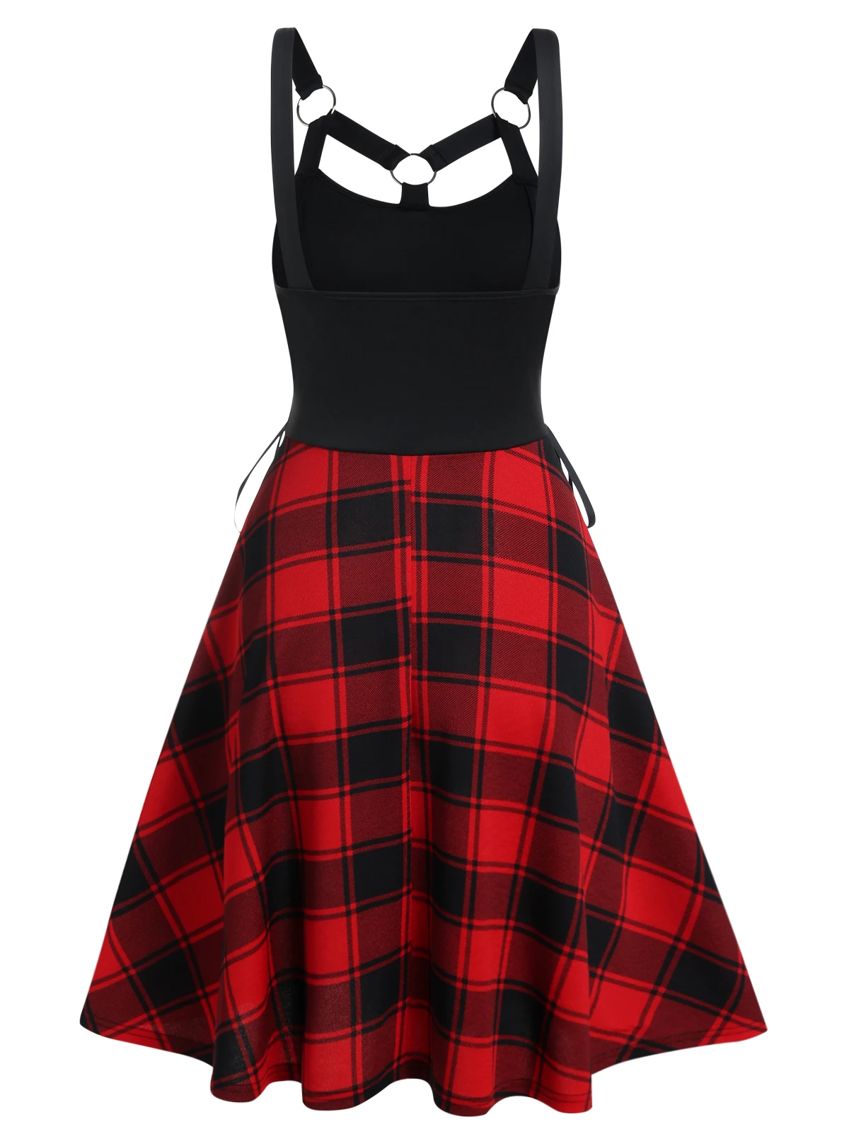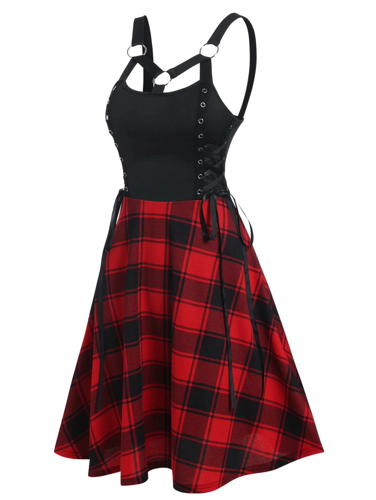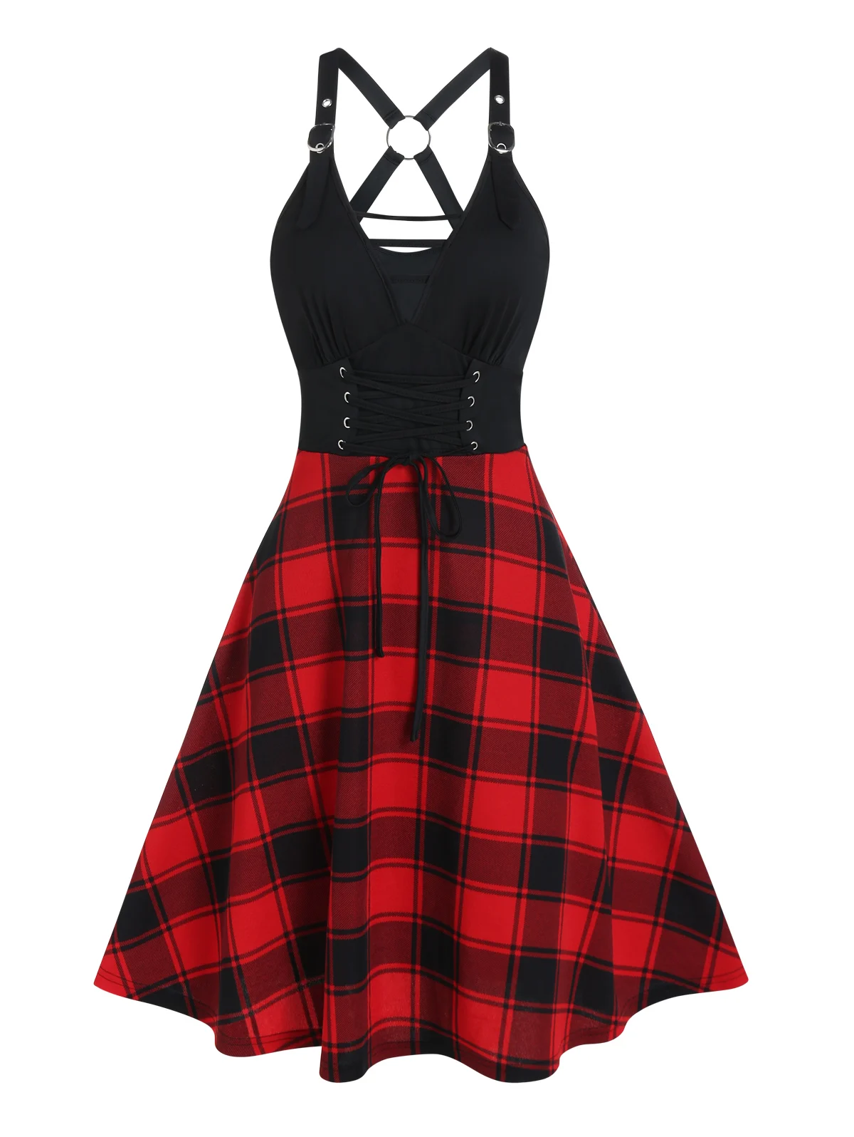 Plaid Pattern Button Up Asymmetric Femme Dress Shirt Women Belted Asymmetrical Chic Retro Gothic Elegant Semi Formal Dresses