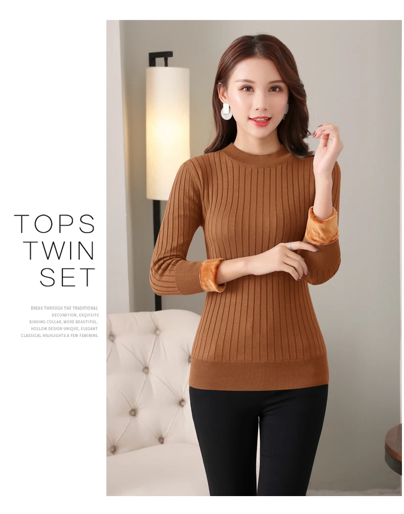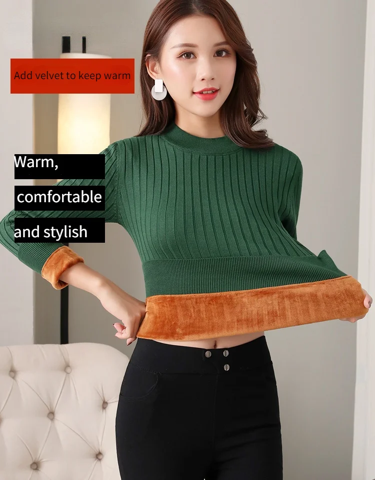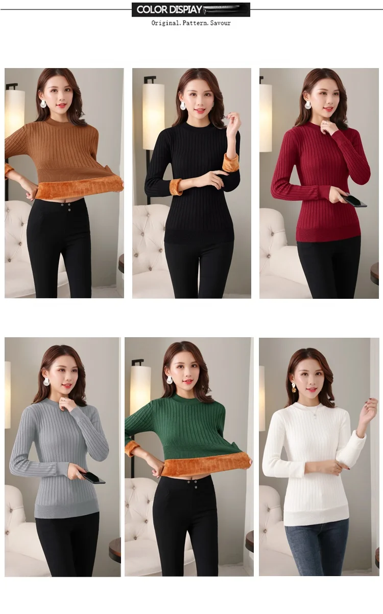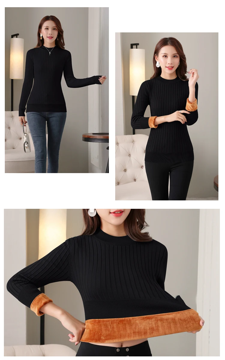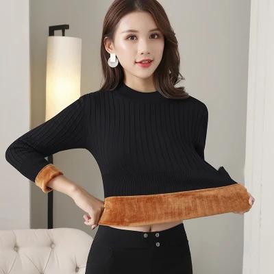 Plus fleece sweater bottoming shirt women's winter thick long-sleeved thick warm autumn and winter all-match sweater pullover