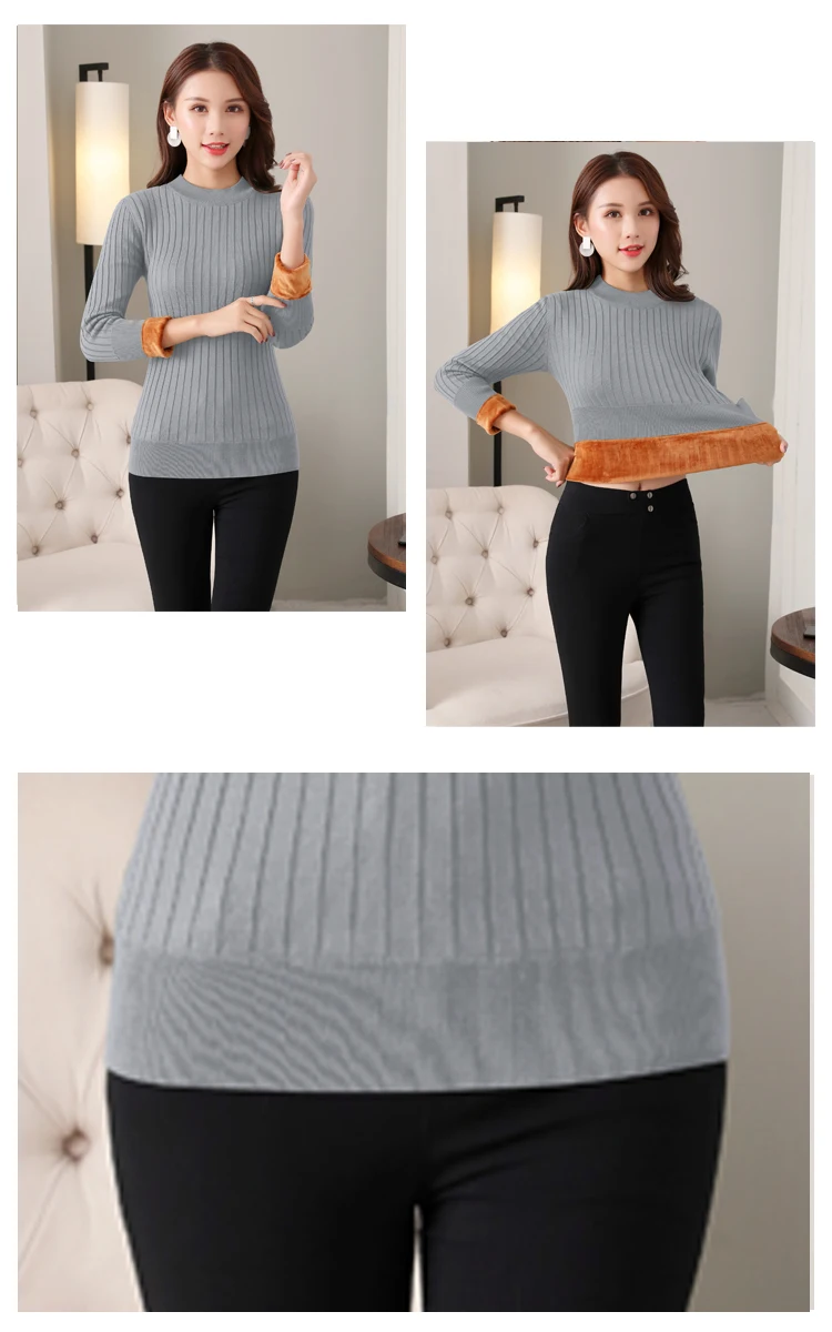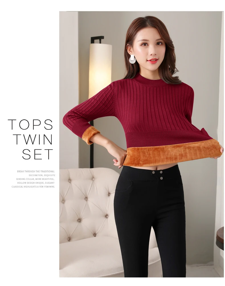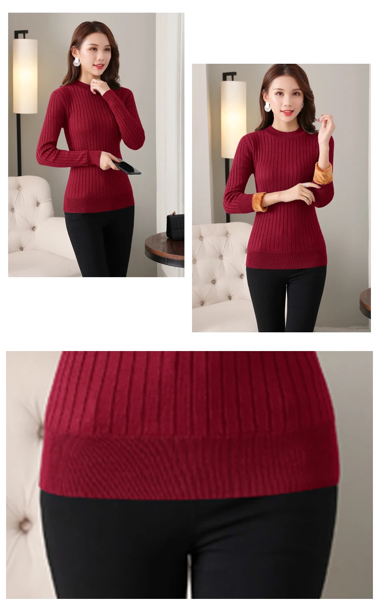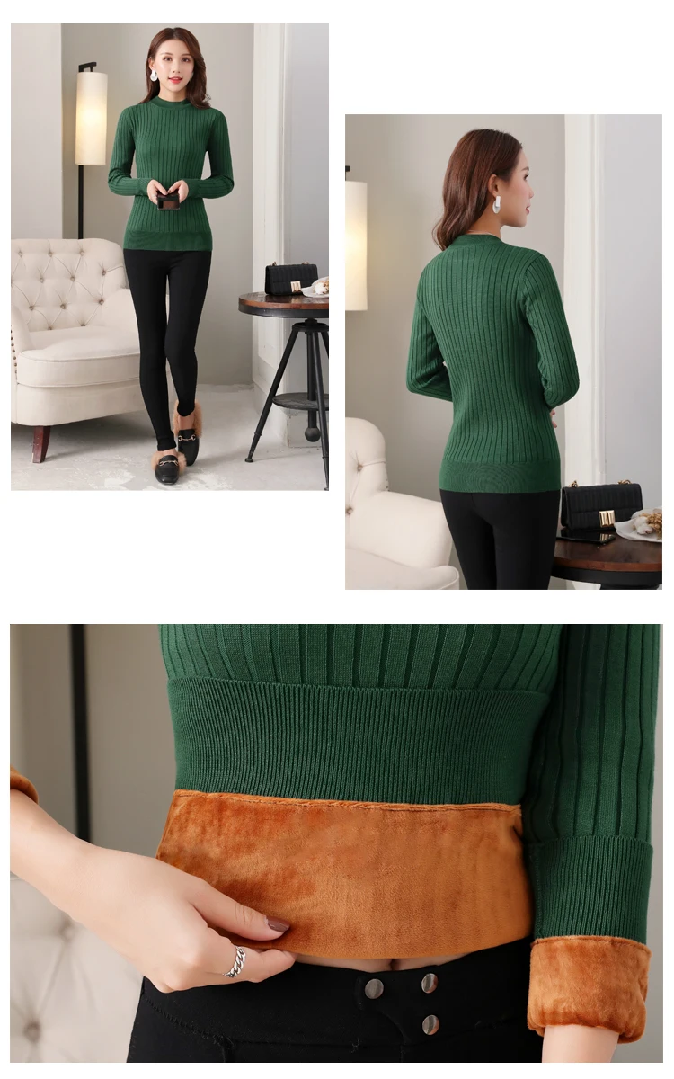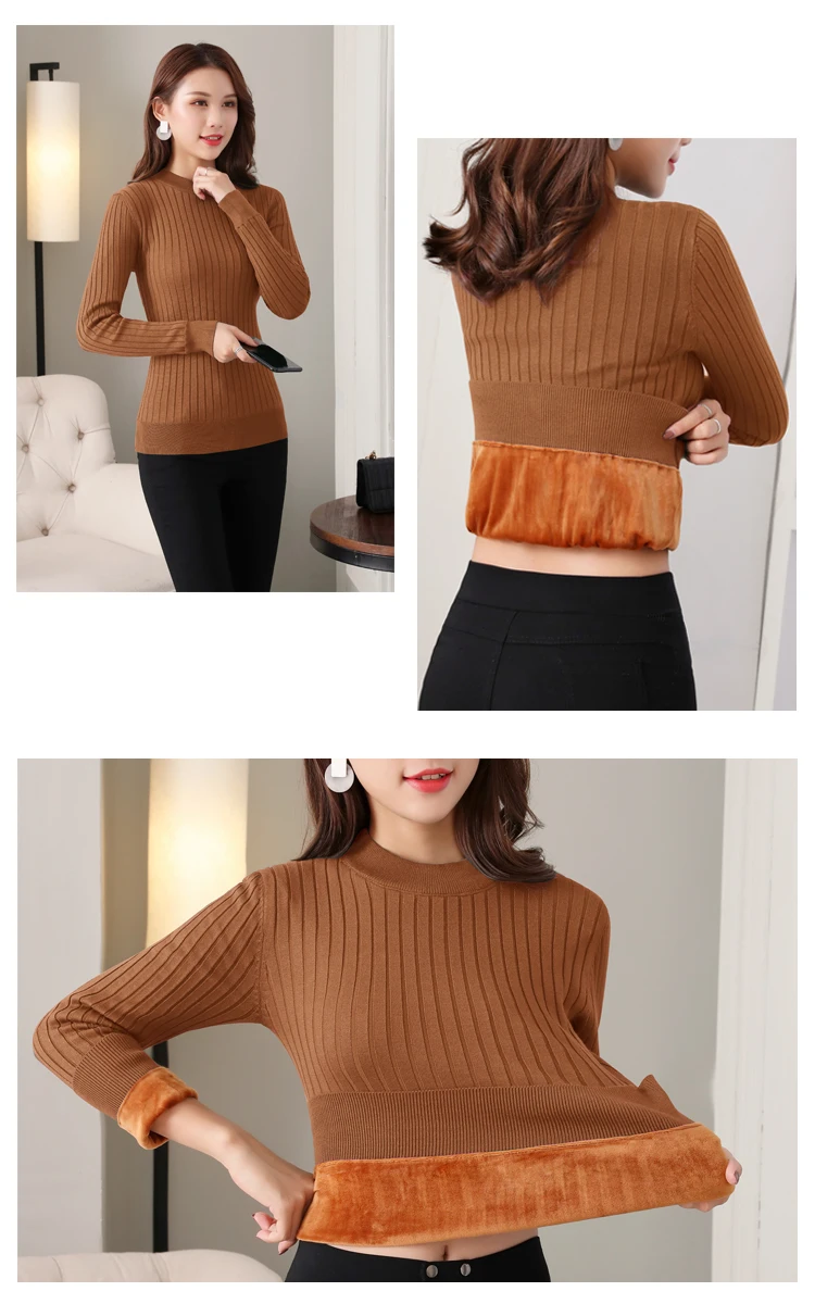Plus fleece sweater bottoming shirt women's winter thick long-sleeved thick warm autumn and winter all-match sweater pullover