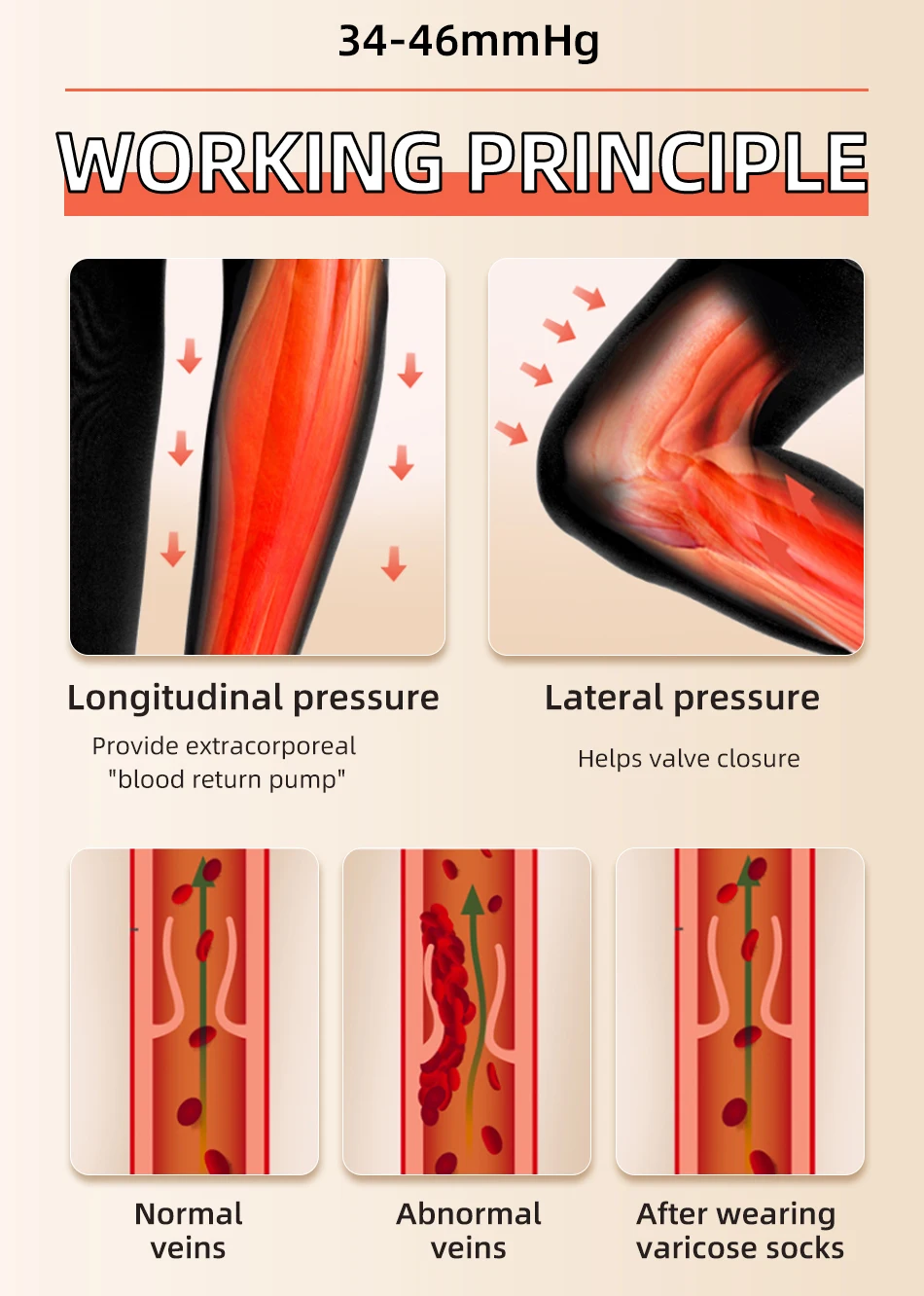 First level 15-21 mmHg): It is suitable for health prevention in people. For example, teachers, traffic police, nurses, doctors, beauticians, shopping guides, etc., and these socks are also suitable for early symptoms, such as venous vessels with slight Lower limb, standing times too long that feeling Soreness