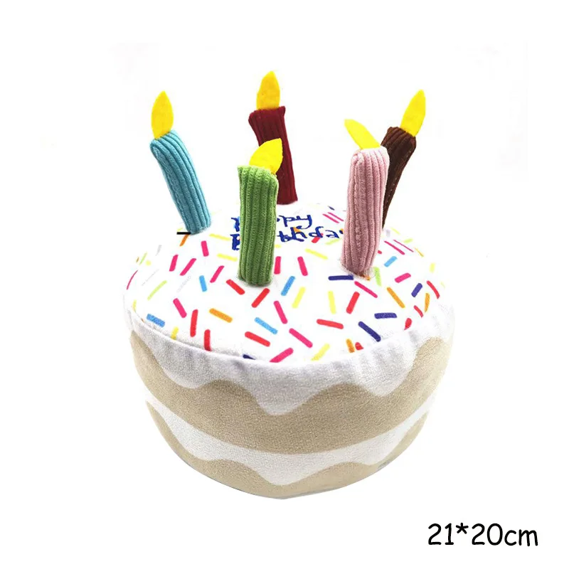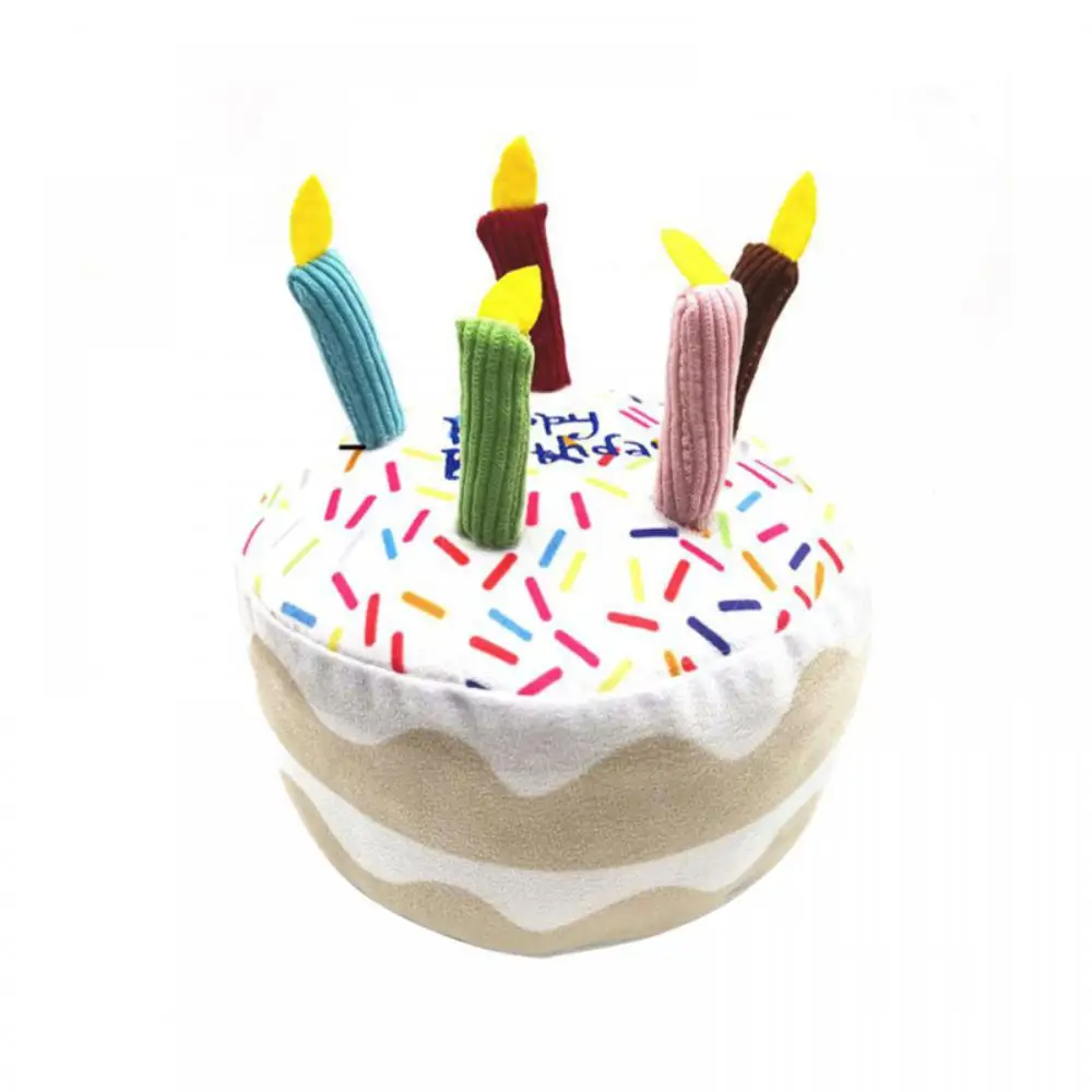Plush Birthday Cake Dog Toy Multicolor Small Plush Pet Supplies Celebration Squeaky Play Interactive Chew Cake Dog Toy Sounding