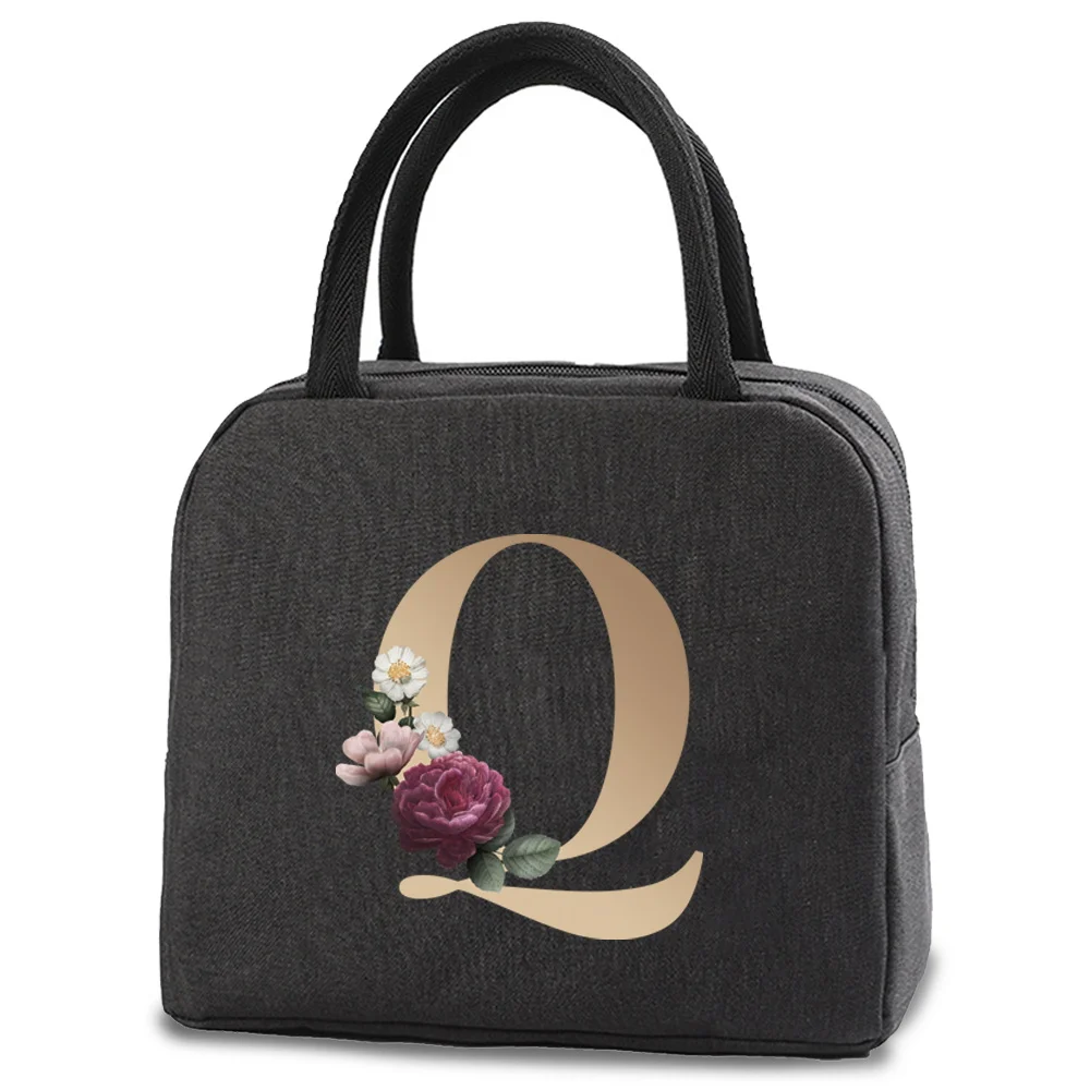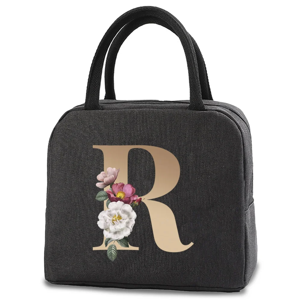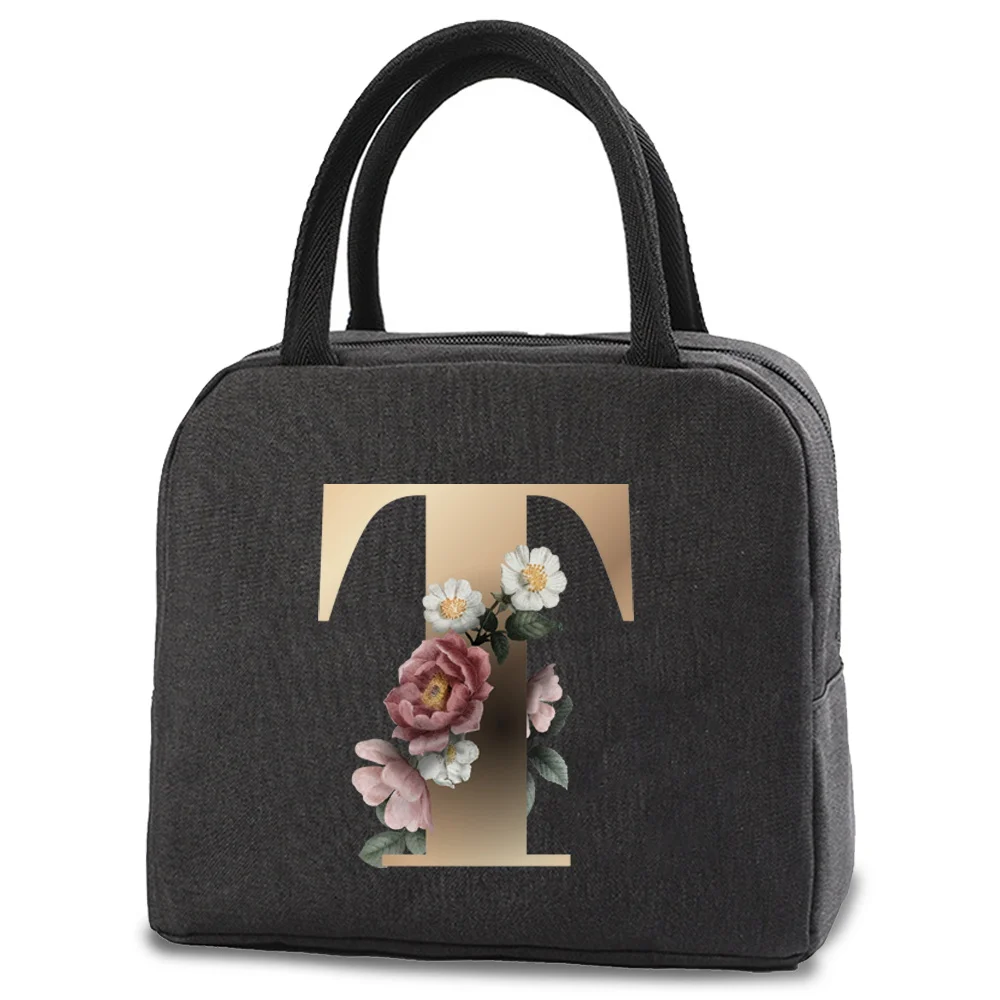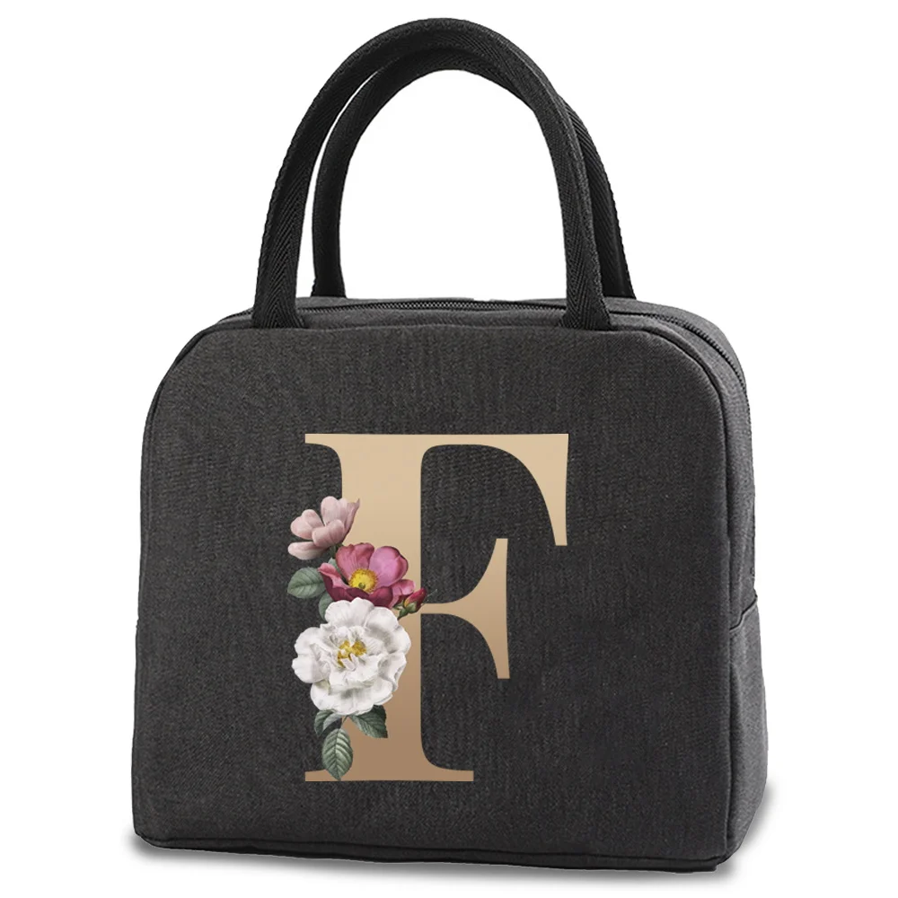 Portable Lunch Box for Women Thermal Insulated Kids Lunch Box Men Handbag Food Picnic for Work Cooler Storage Bags Gold Letter