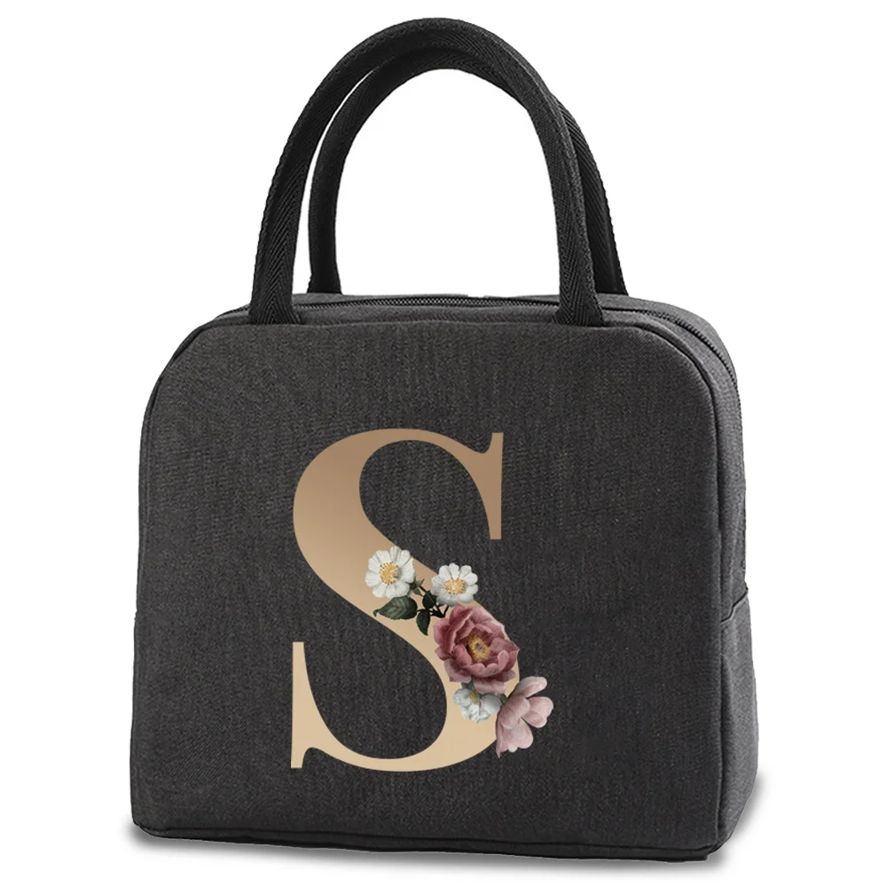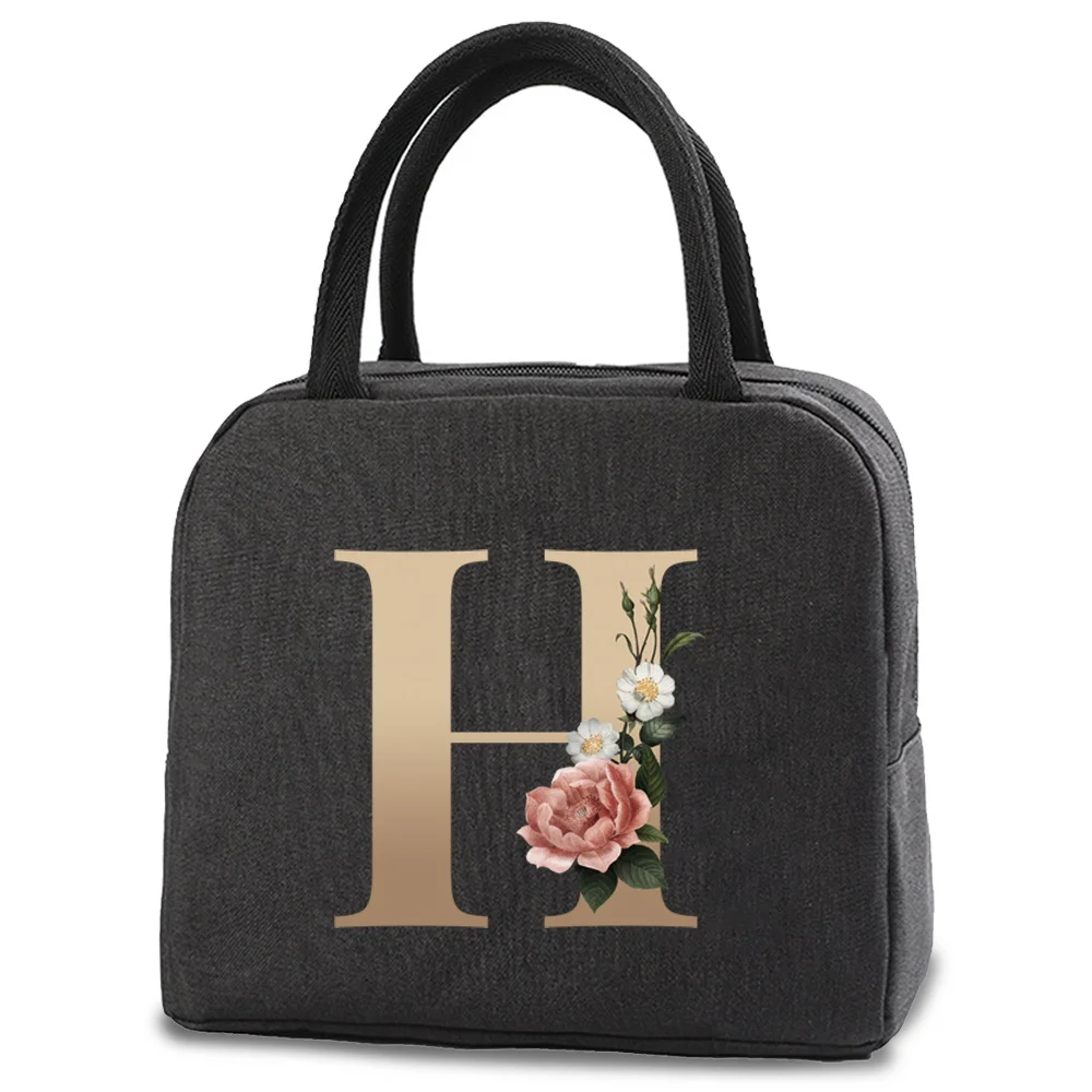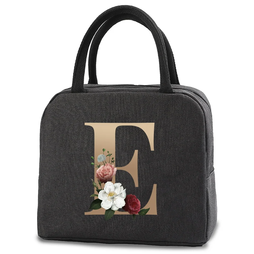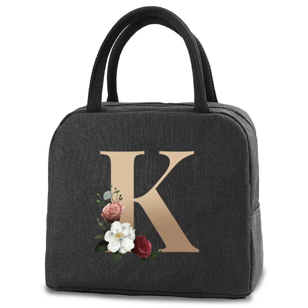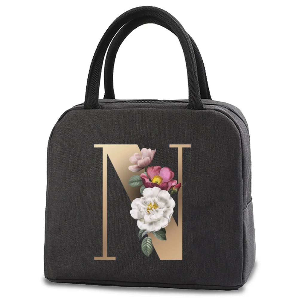 Portable Lunch Box for Women Thermal Insulated Kids Lunch Box Men Handbag Food Picnic for Work Cooler Storage Bags Gold Letter