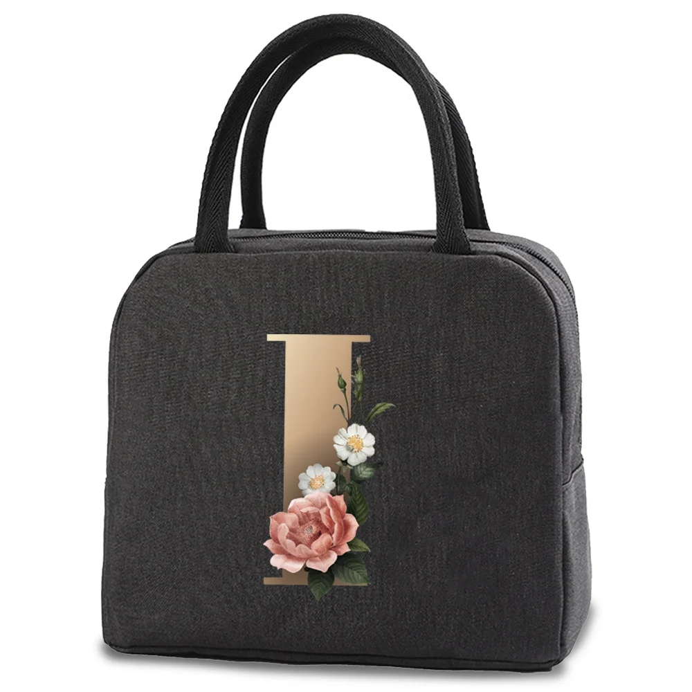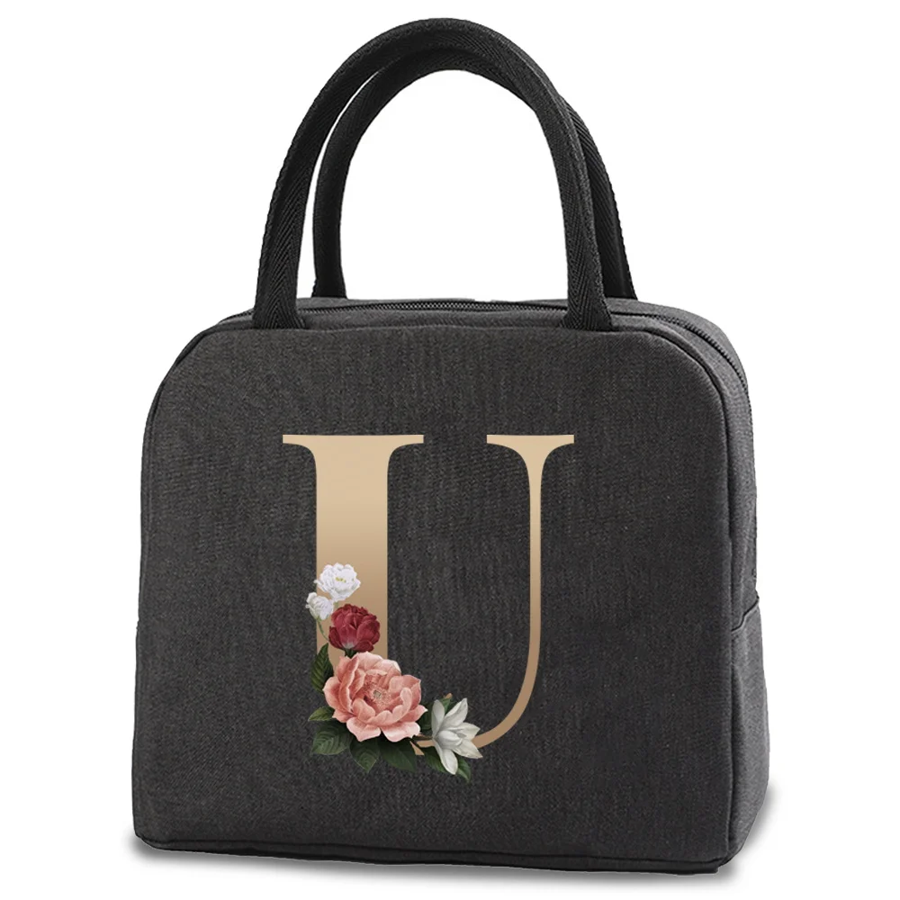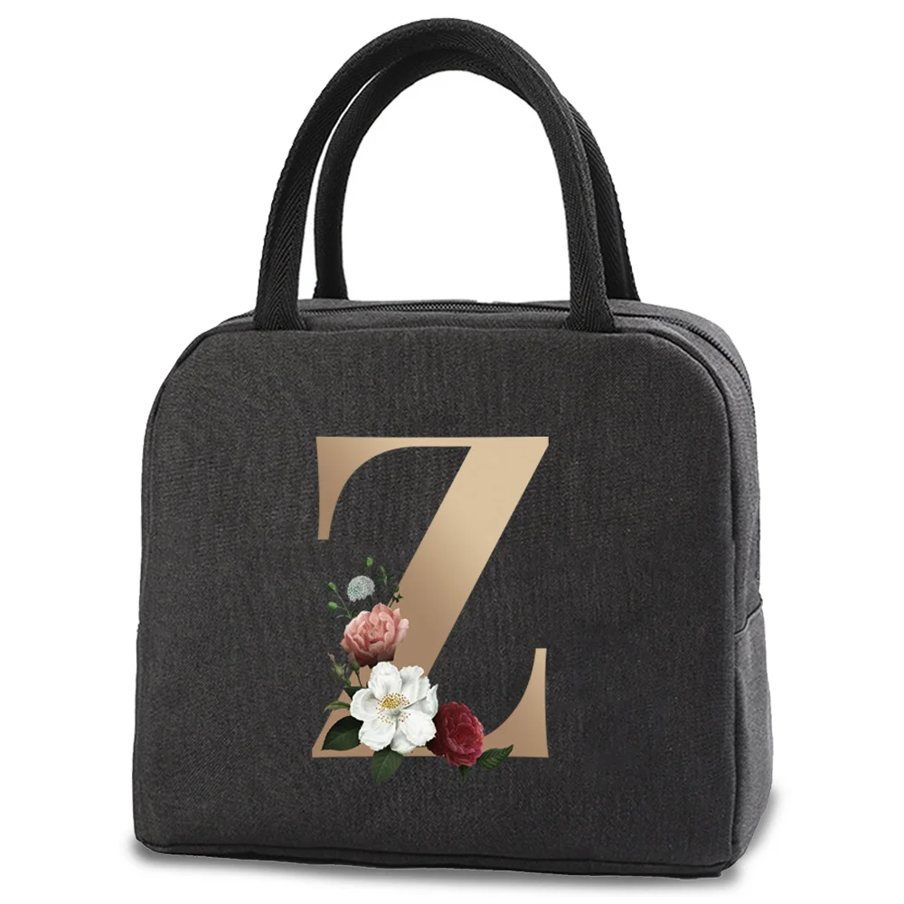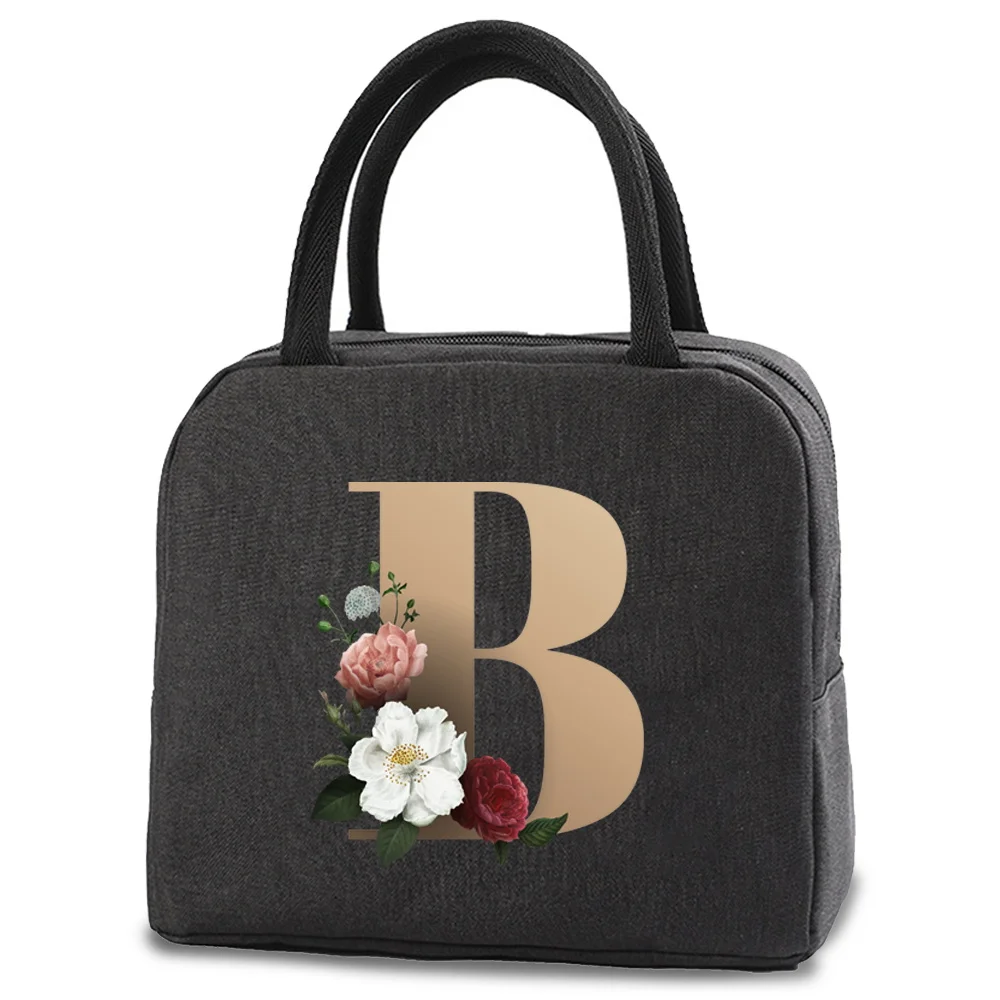 Portable Lunch Box for Women Thermal Insulated Kids Lunch Box Men Handbag Food Picnic for Work Cooler Storage Bags Gold Letter