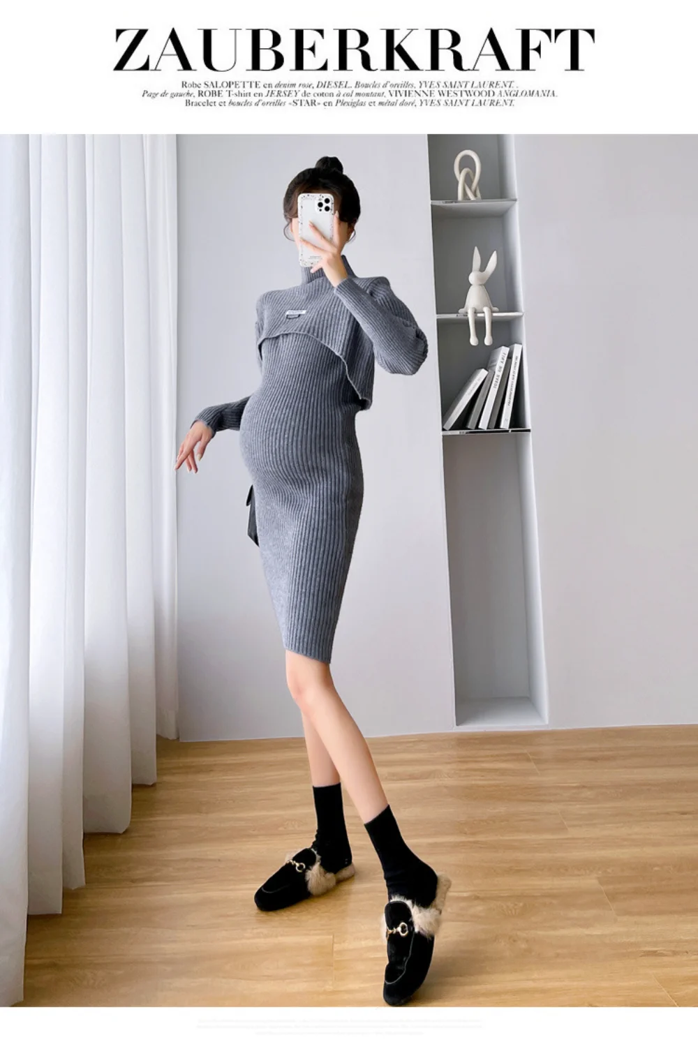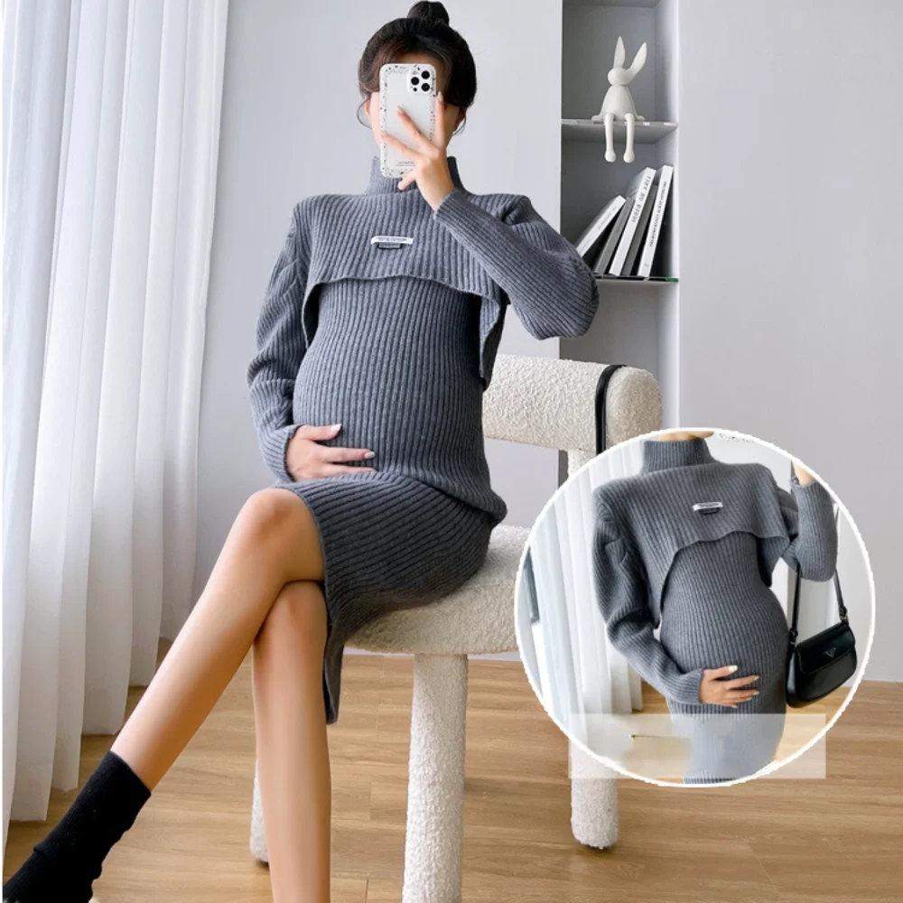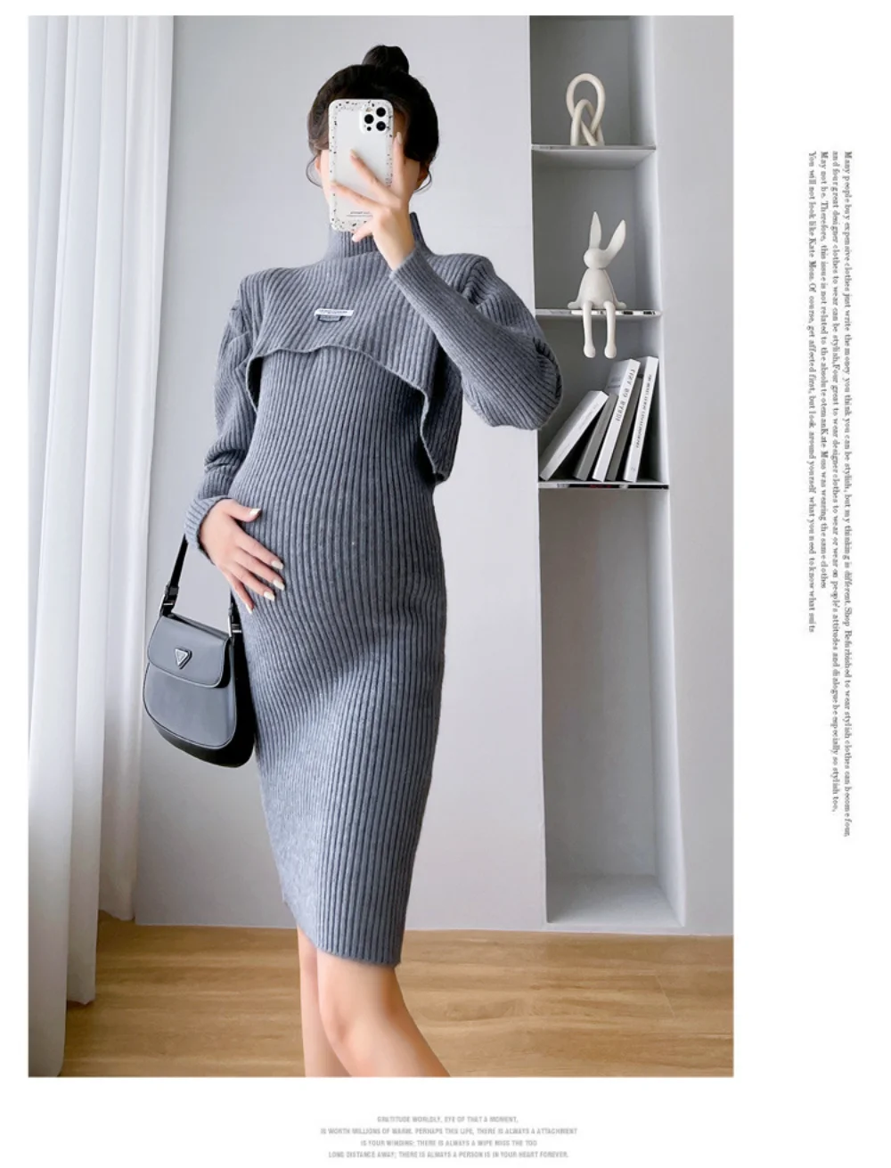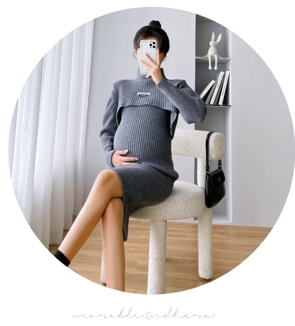 Pregnant Women Wear Autumn Winter New Pregnant Women Wear Casual Fashion Contracted Show Thin Lactation Set Dress