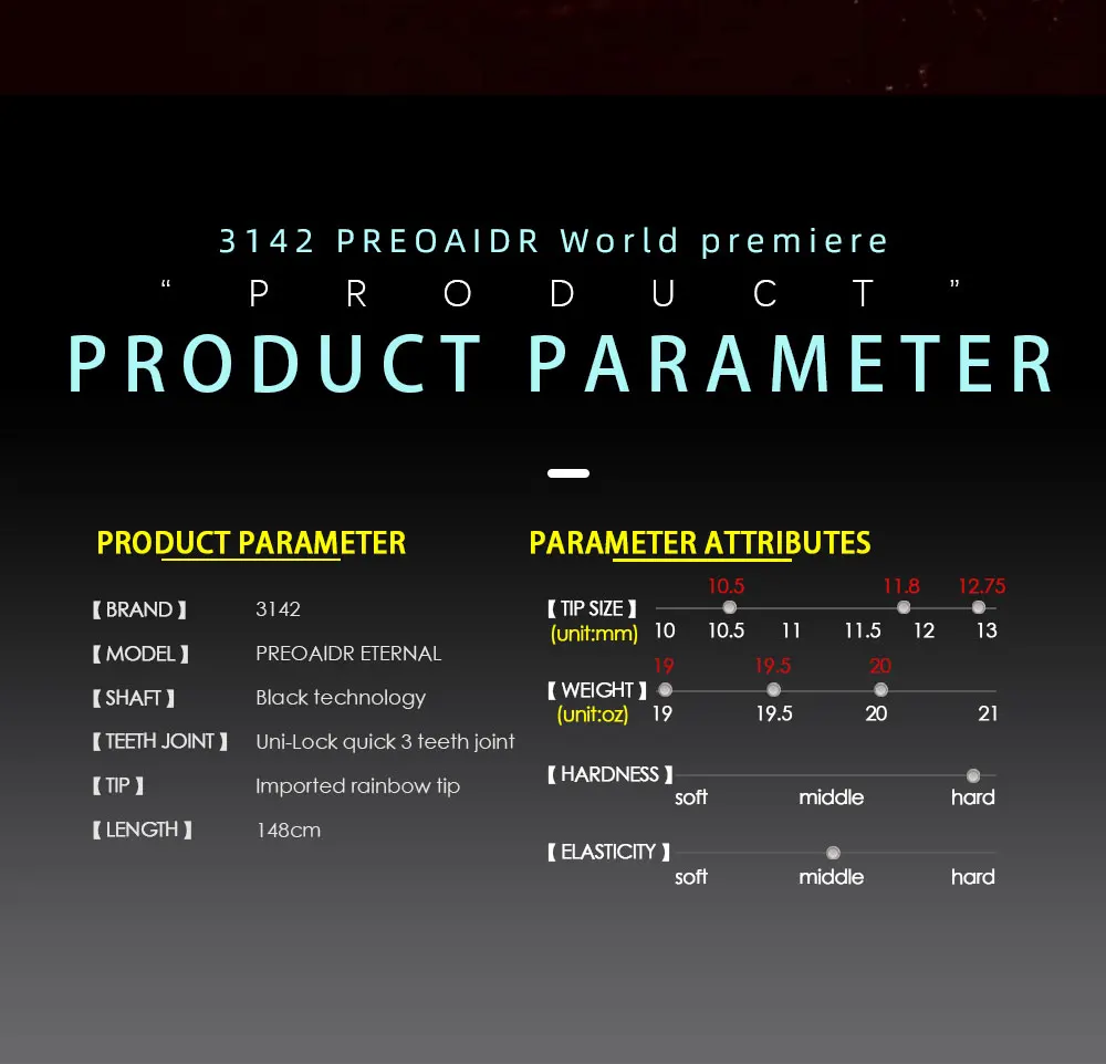 PREOAIDR 3142 Billiard Pool Cue Stick Black Technology Shaft Uni-loc Joint 10.5/11.8/ 12.75mm Rainbow Tip Professional Cue Stick