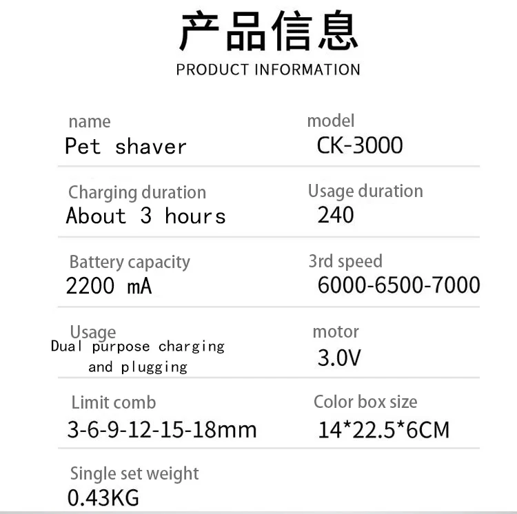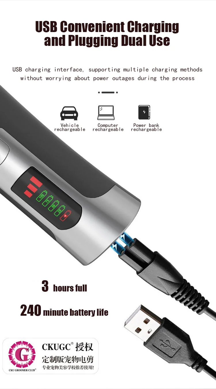 Professional Animal Cordless Clipper Kit for Pet, Dog & Cat Grooming,