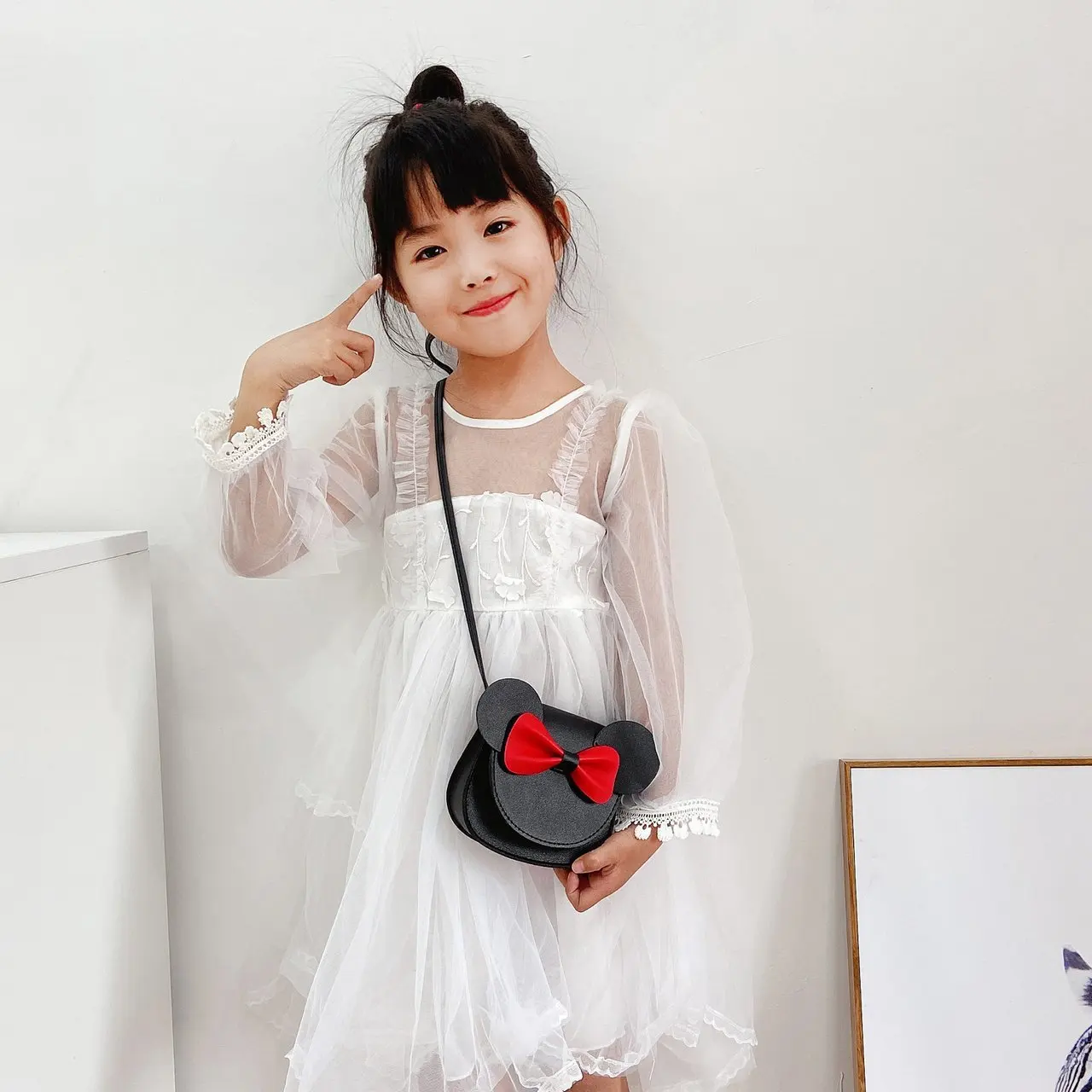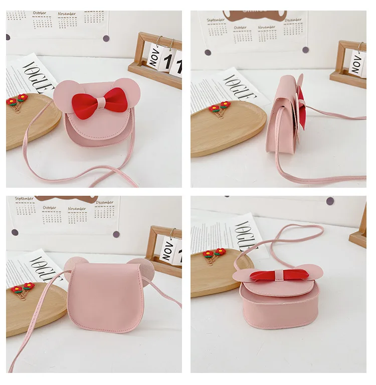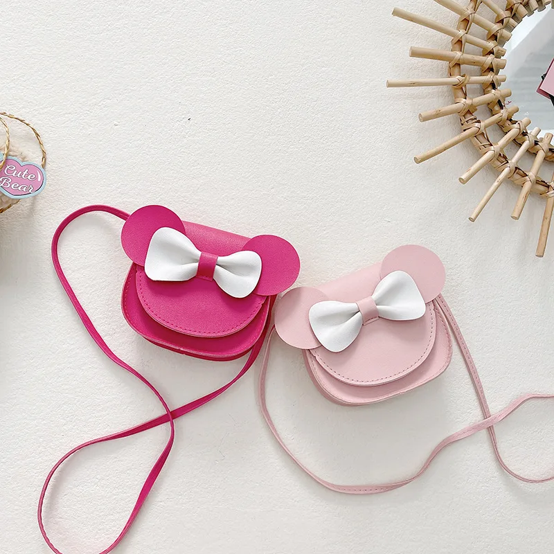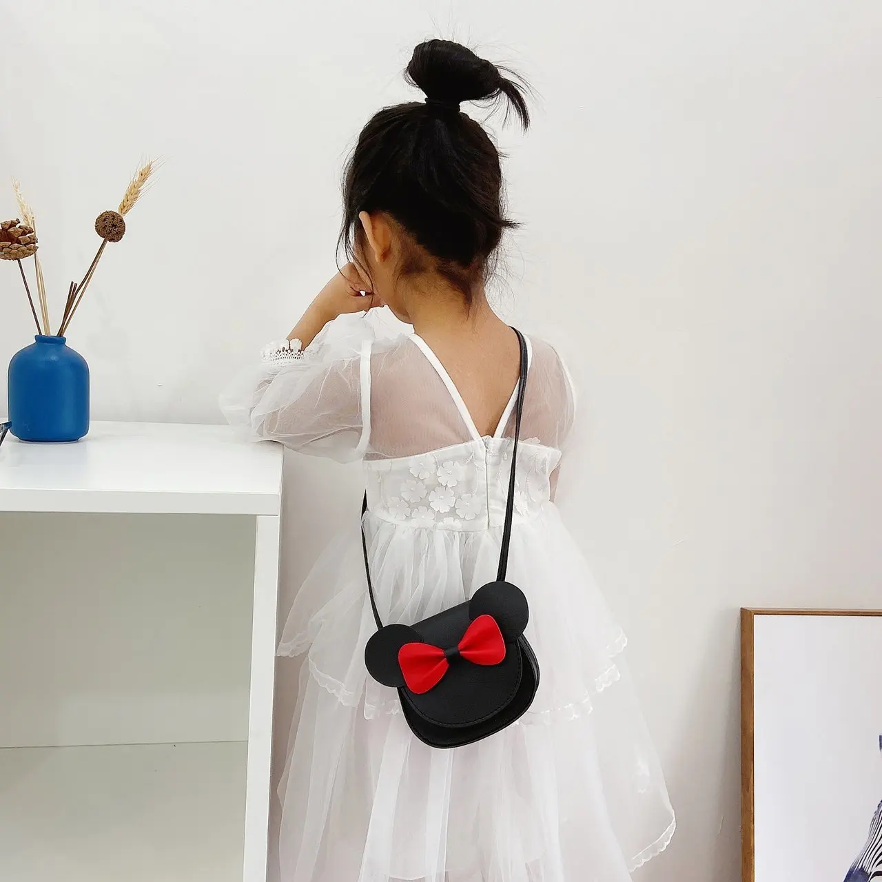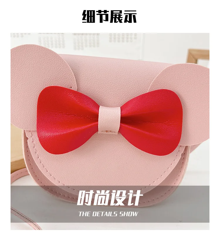 PU Leather Small Bag Fashion Baby Girl Cartoon Crossbody Bag Cute Mouse Ear Bowknot Magnetic Snap Shoulder Bags Coin Purse