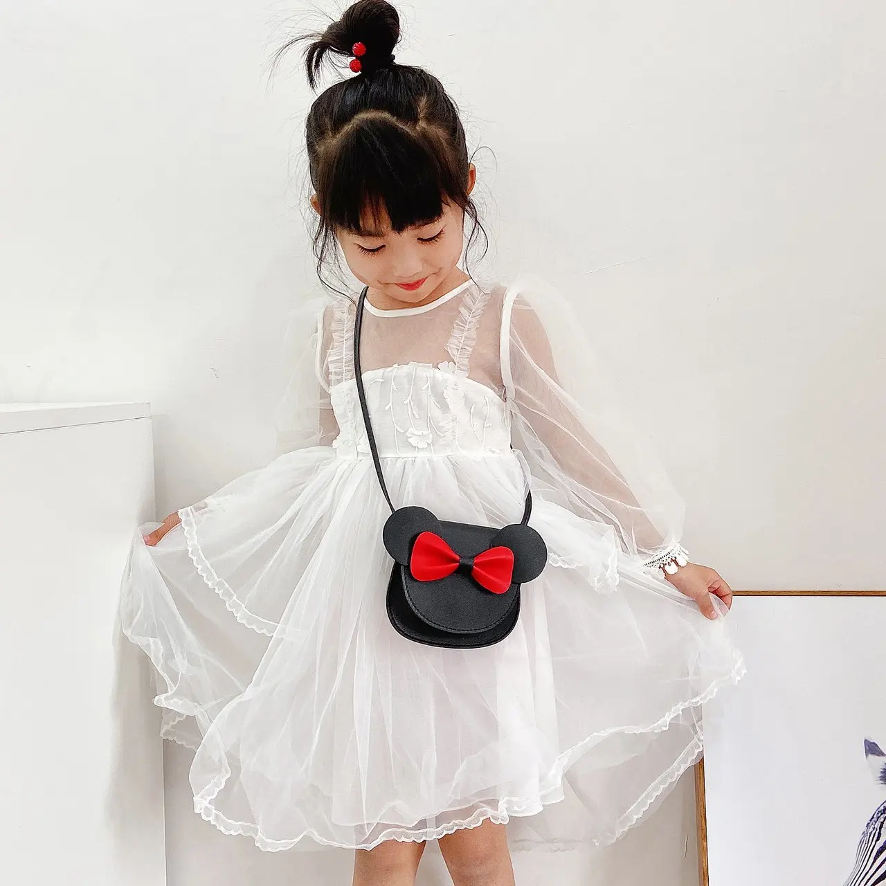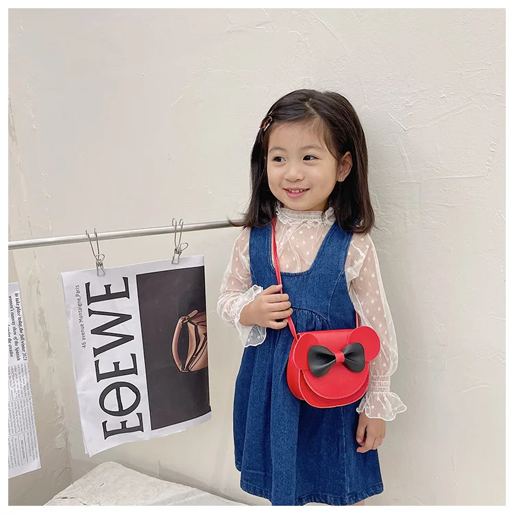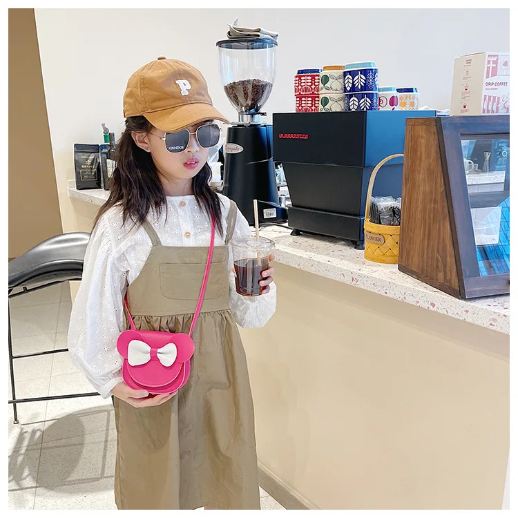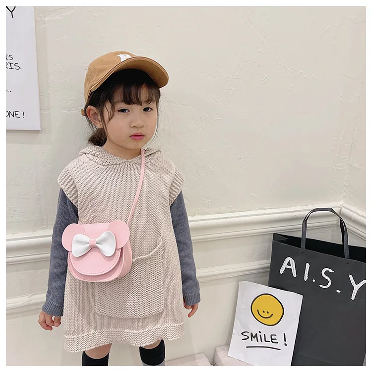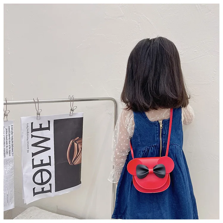 PU Leather Small Bag Fashion Baby Girl Cartoon Crossbody Bag Cute Mouse Ear Bowknot Magnetic Snap Shoulder Bags Coin Purse