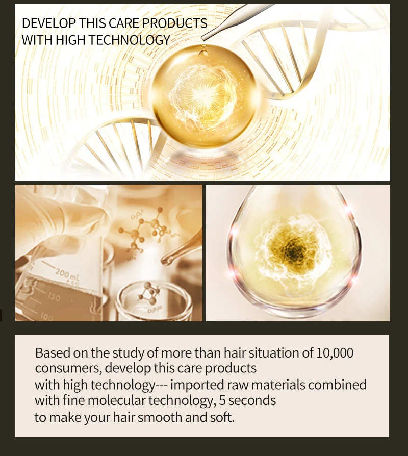 technology— imported raw materials combined with fine molecular technology, can make hair to restore soft,