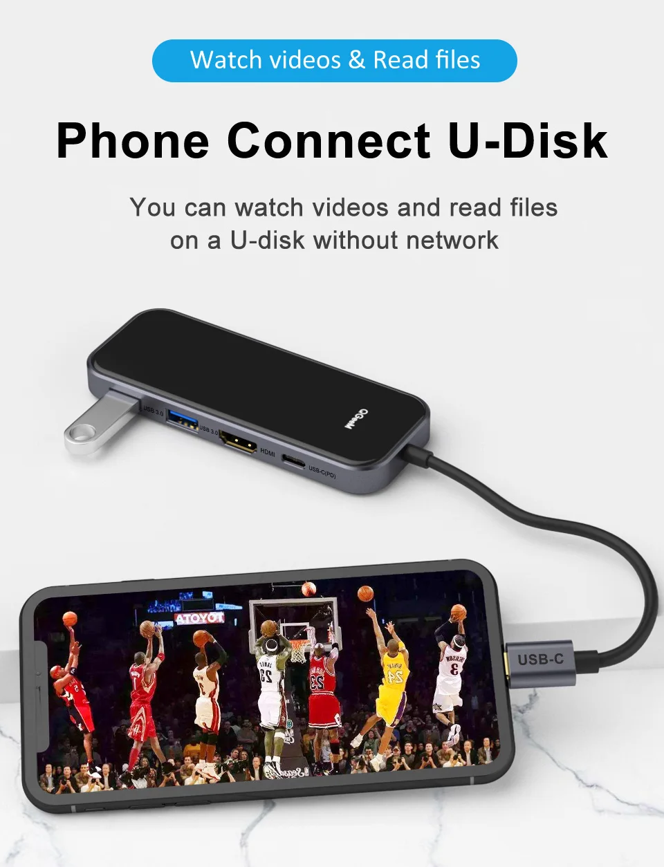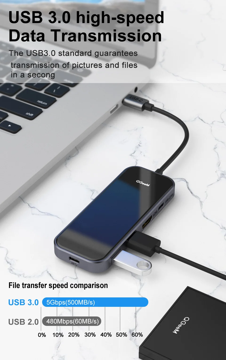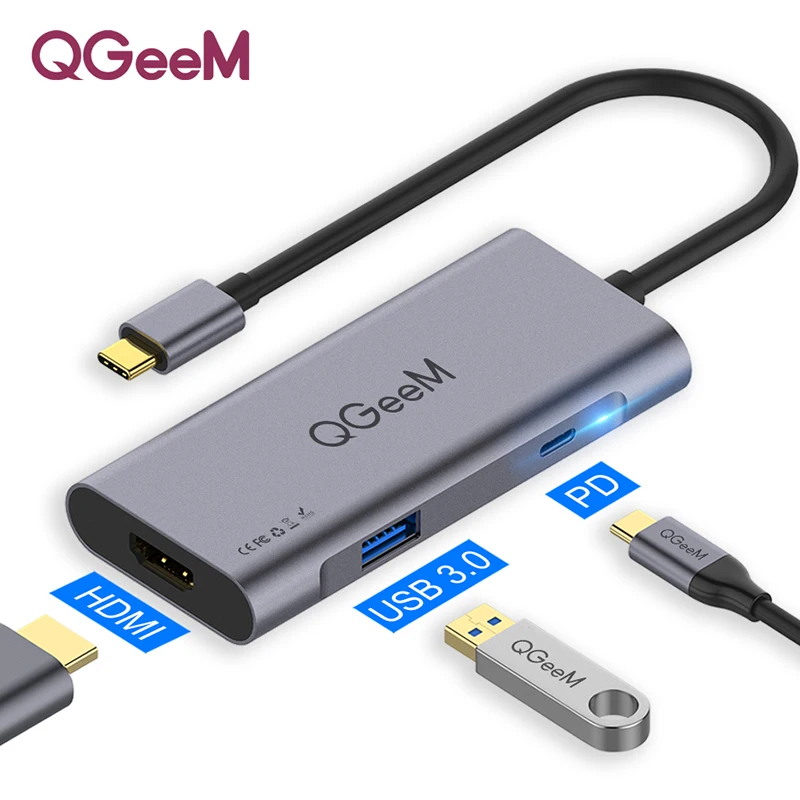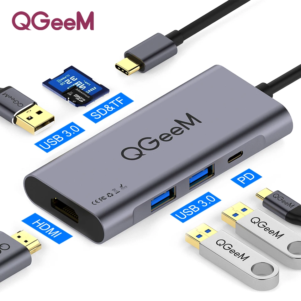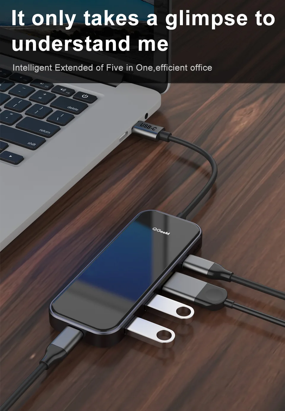 QGeeM 5-IN-1Highlight USB C Hub for Macbook Pro Multi USB 3.1 Hub Type C 3.0 Hub HDMI PD Adapter for iPad Pro OTG Splitter Charging USB C Dock
