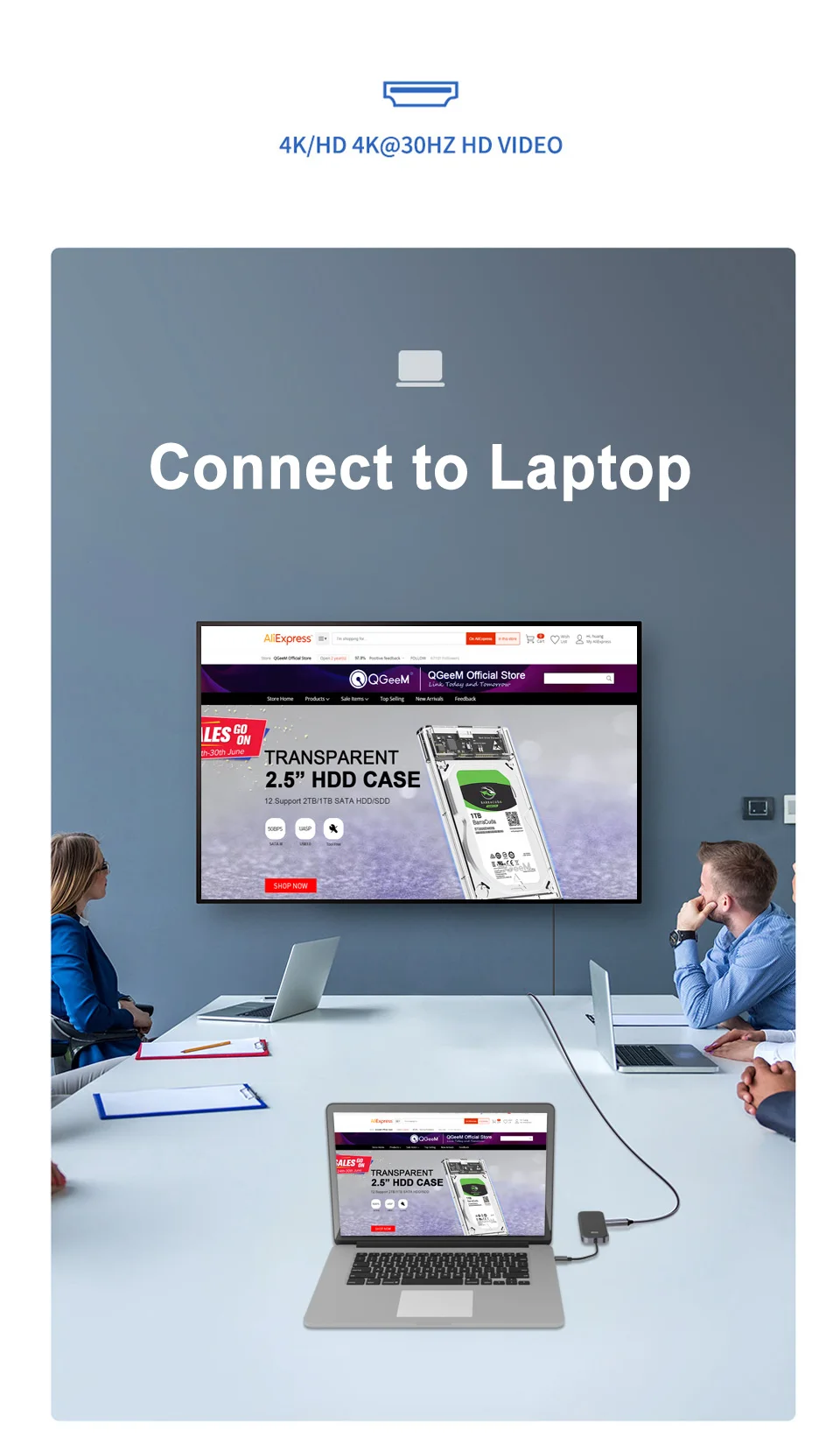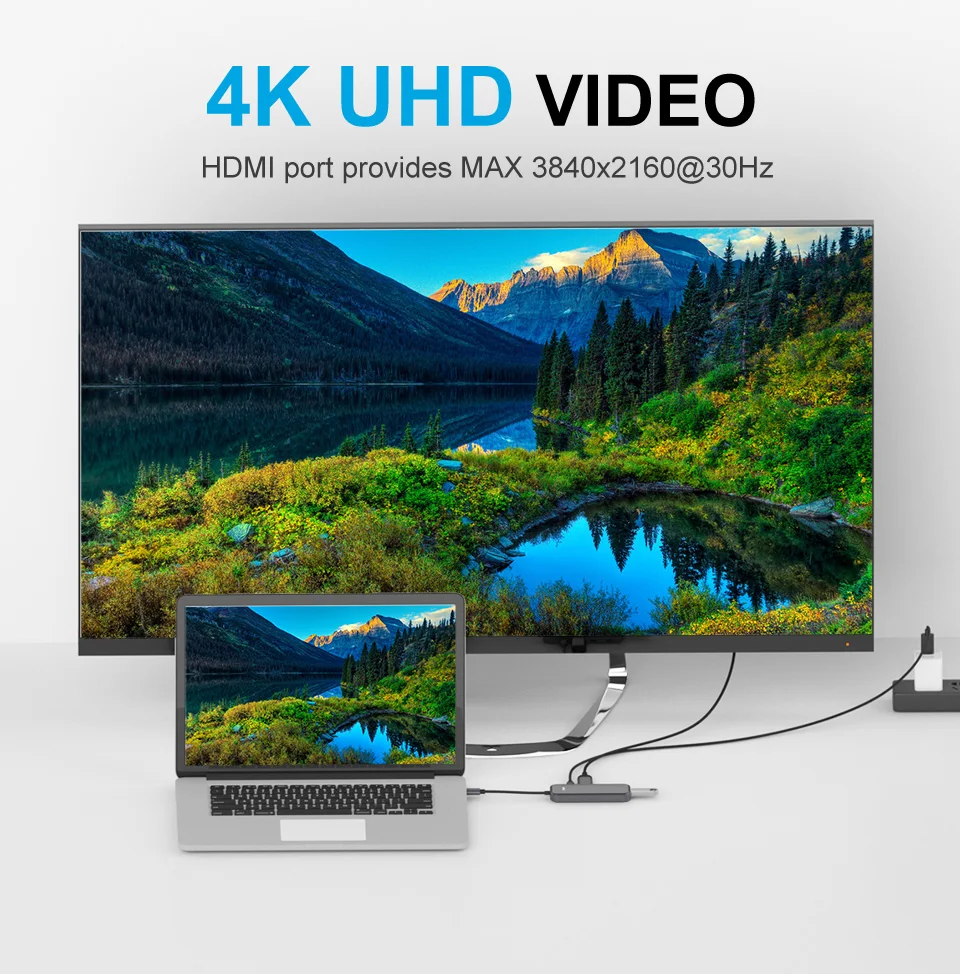 Through this product, it can provide 2 USB3.0 external interfaces for computers with TYPE-C interface, and connect the HDMI cable to high-definition monitor.