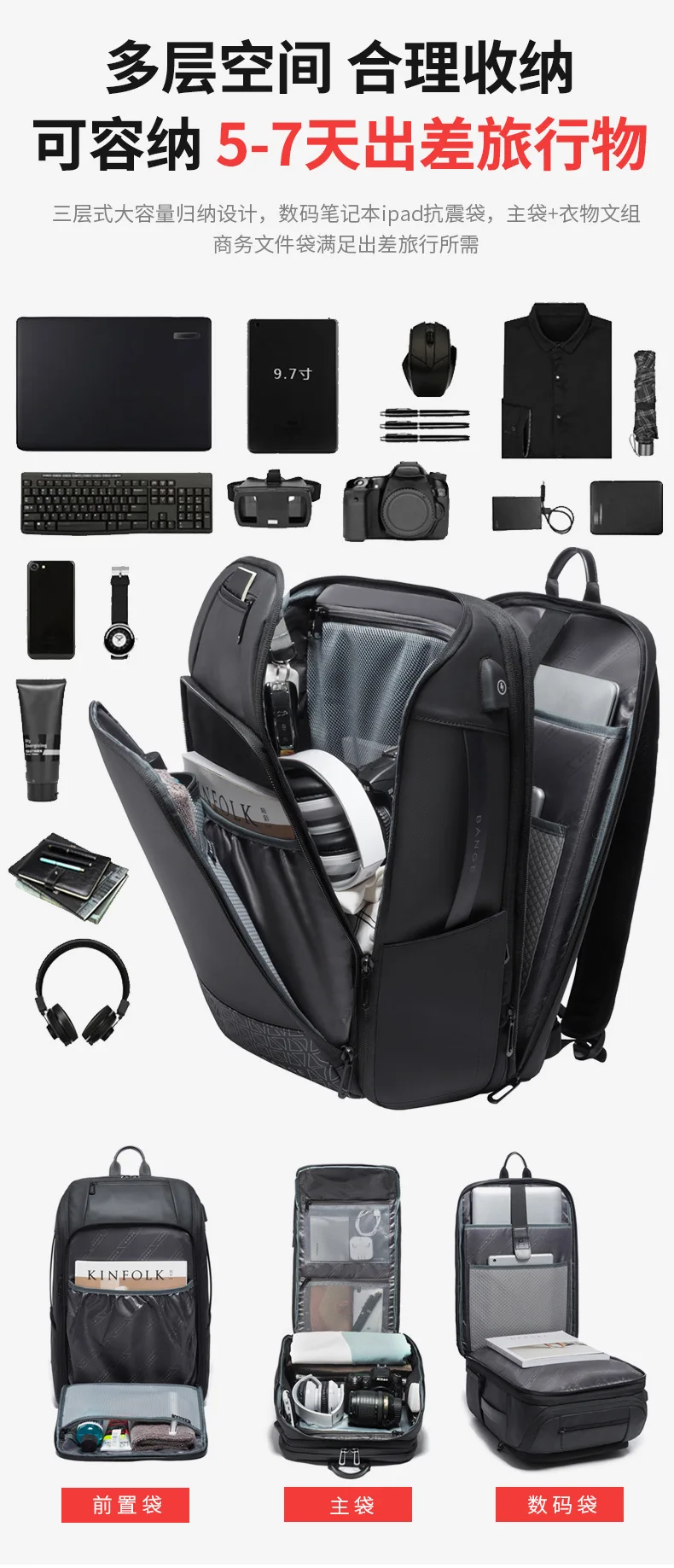 Quality 15.6″ Laptop Travel Business Style Backpack Men Scalable Large Capacity Anti-theft Male Women Luxury Luggage Tote Bags