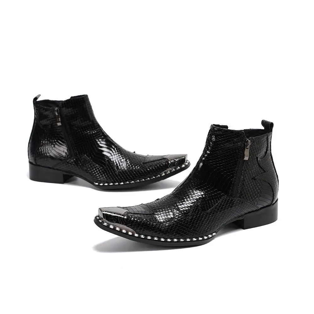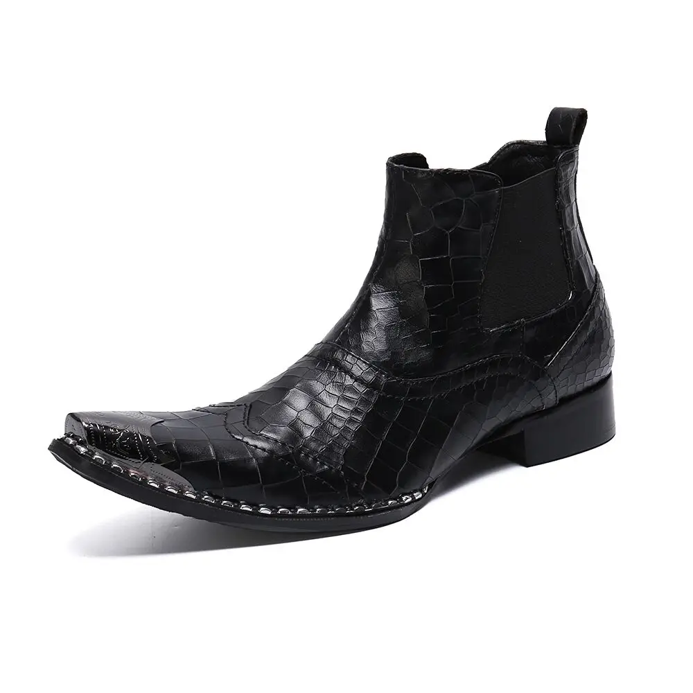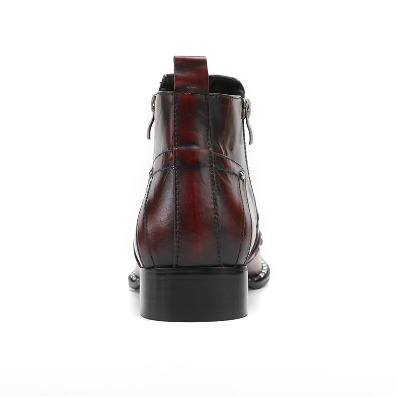 Real Leather Shoes For Men Cowboy Ankle Boots Rivets Motorcycle Short Boots Formal Business Party Dress Boots Sapatos Social