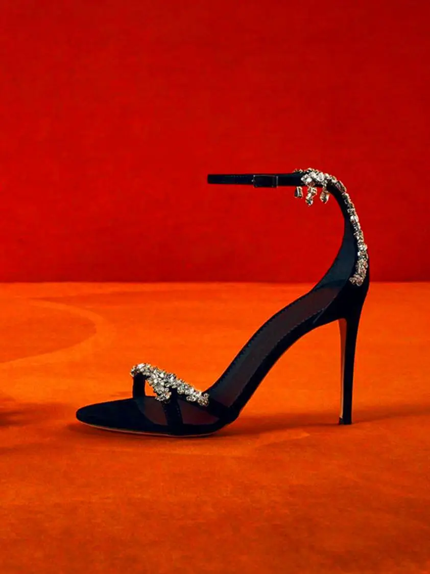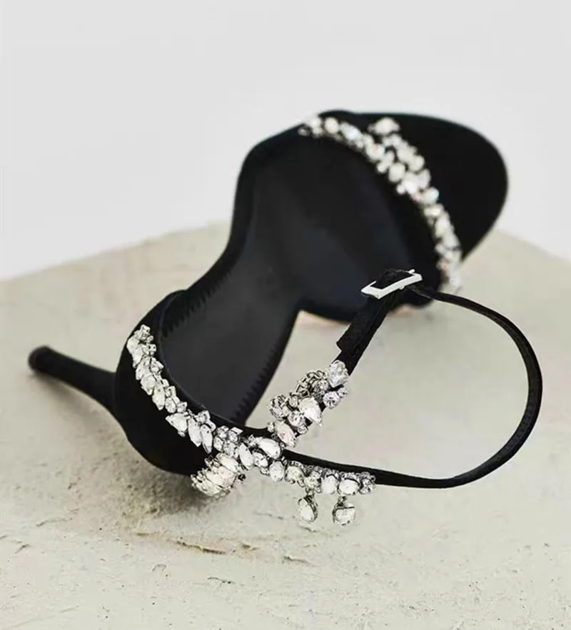 Rhinestone chain sandals women's European and American new black word buckle sexy high heels stiletto summer