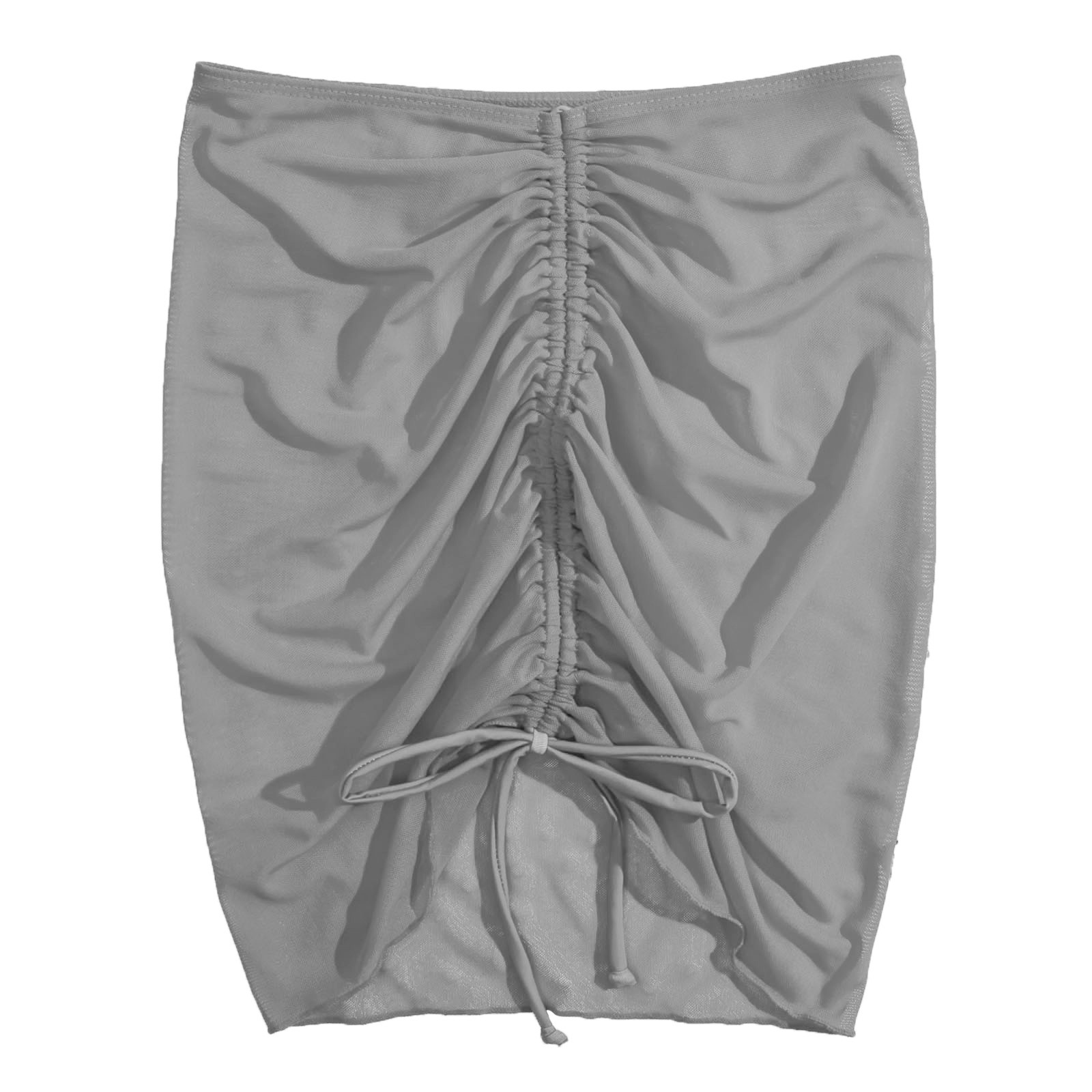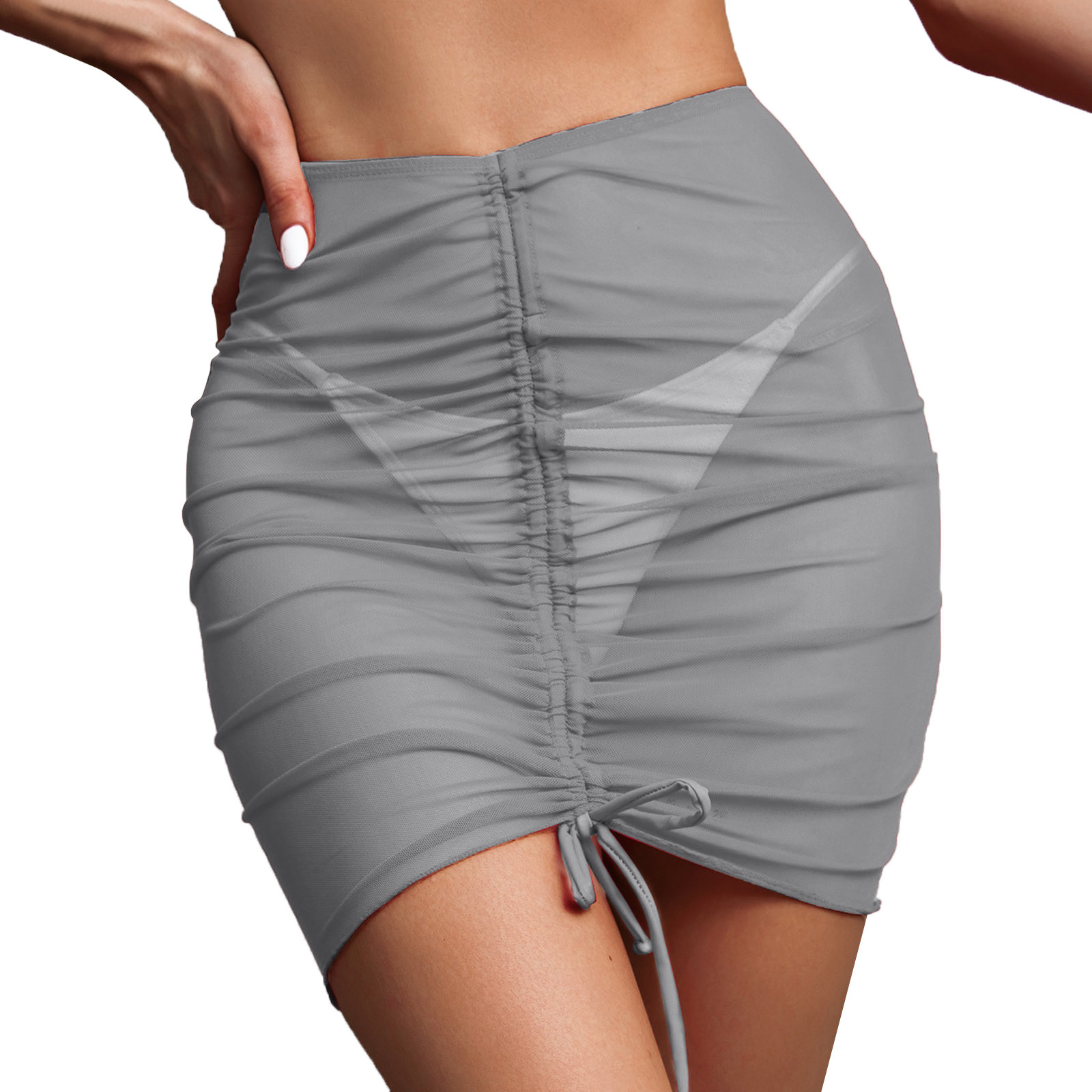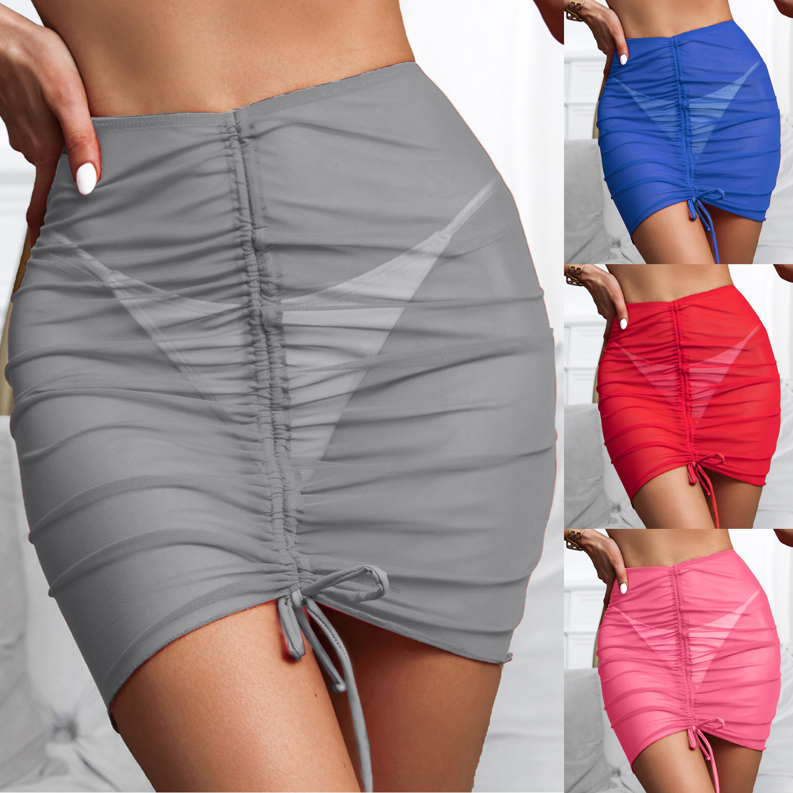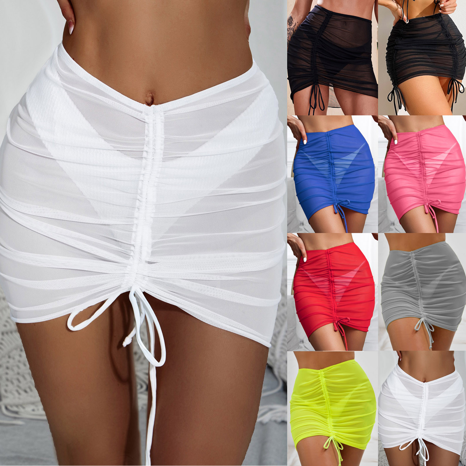 Ruffle Trim Sheer Cover Up Skirt Beach Wraps Cover Ups For Swimwear Mesh Drawstring Cover Up Underwear Beach Outfits For Women