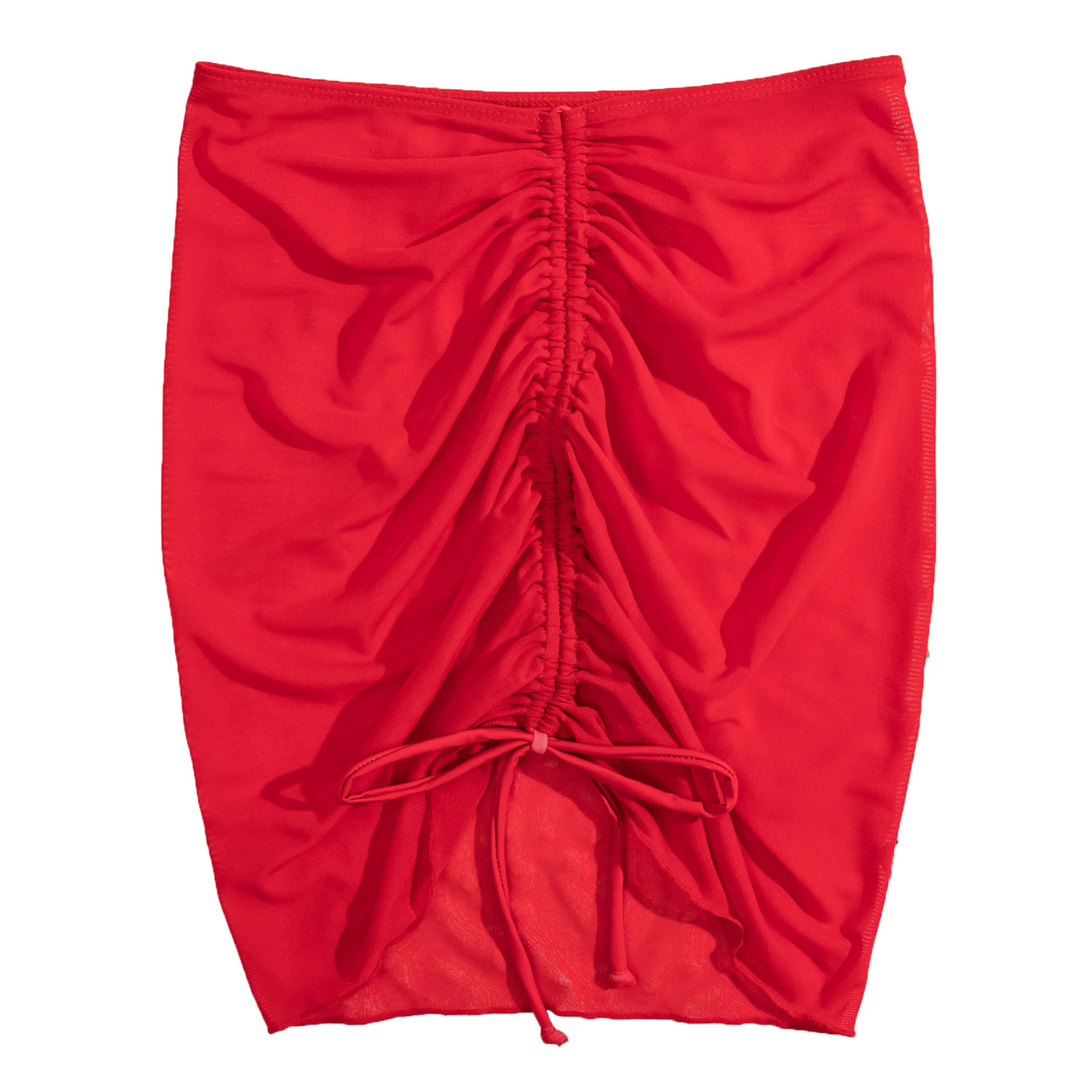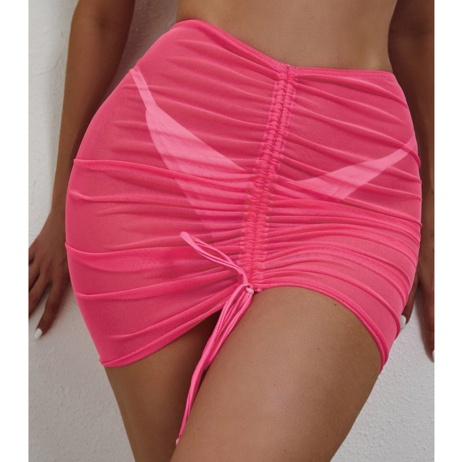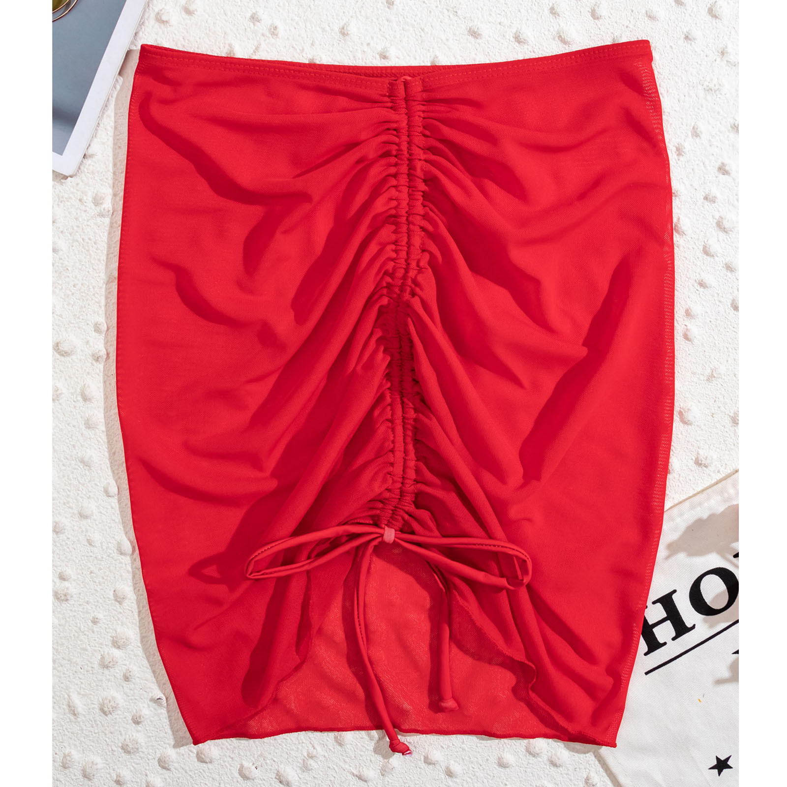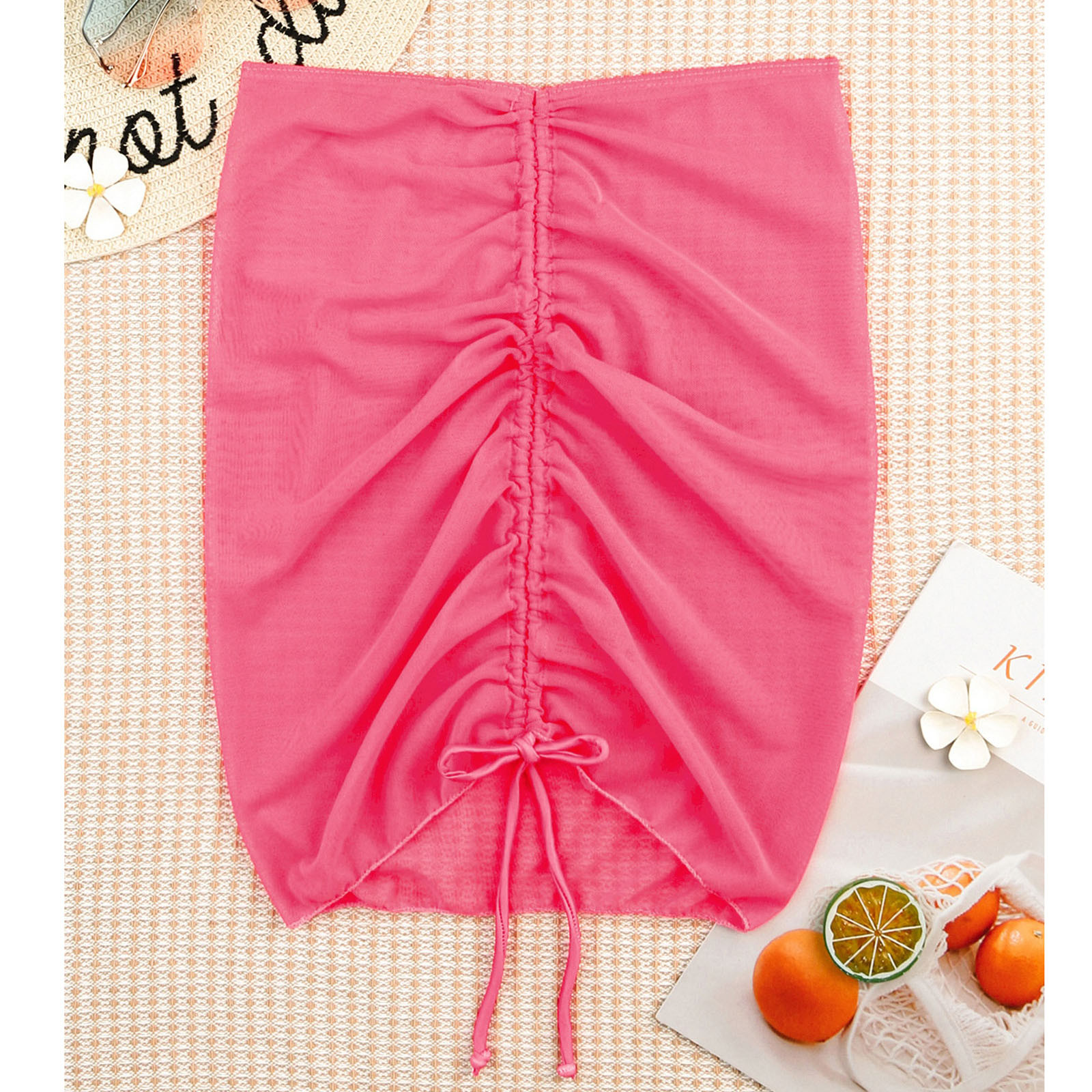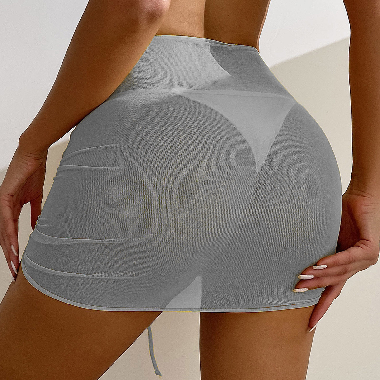 Ruffle Trim Sheer Cover Up Skirt Beach Wraps Cover Ups For Swimwear Mesh Drawstring Cover Up Underwear Beach Outfits For Women
