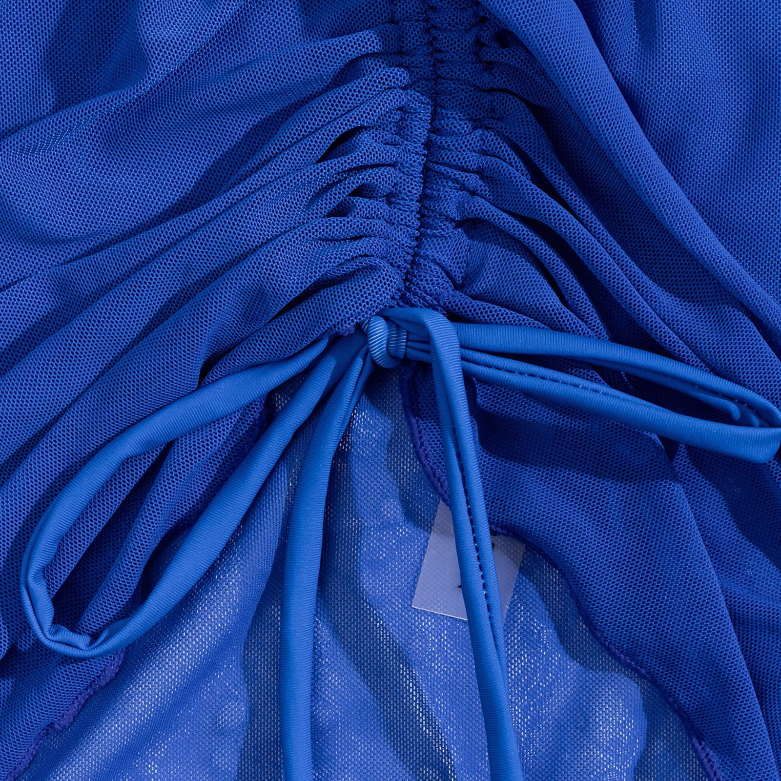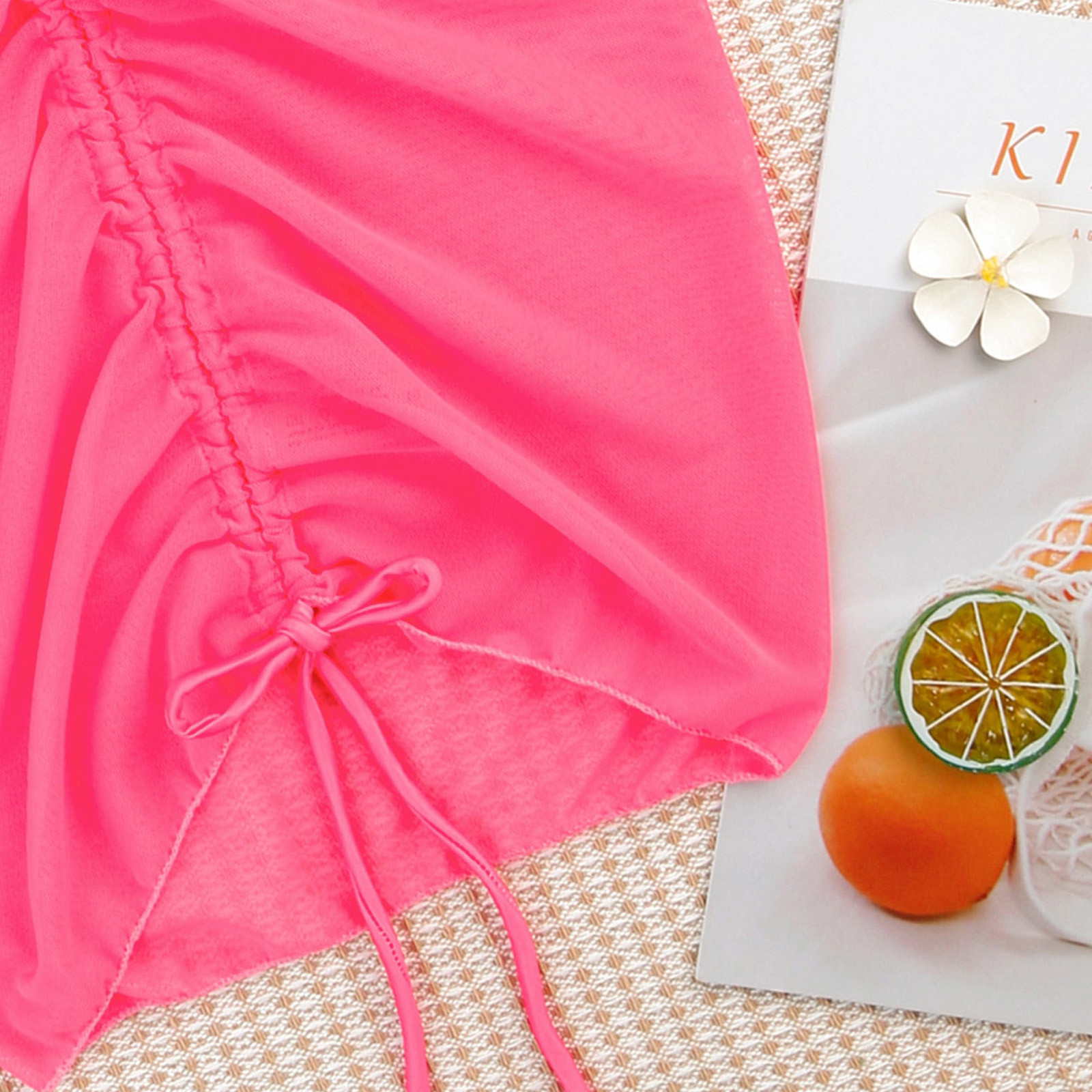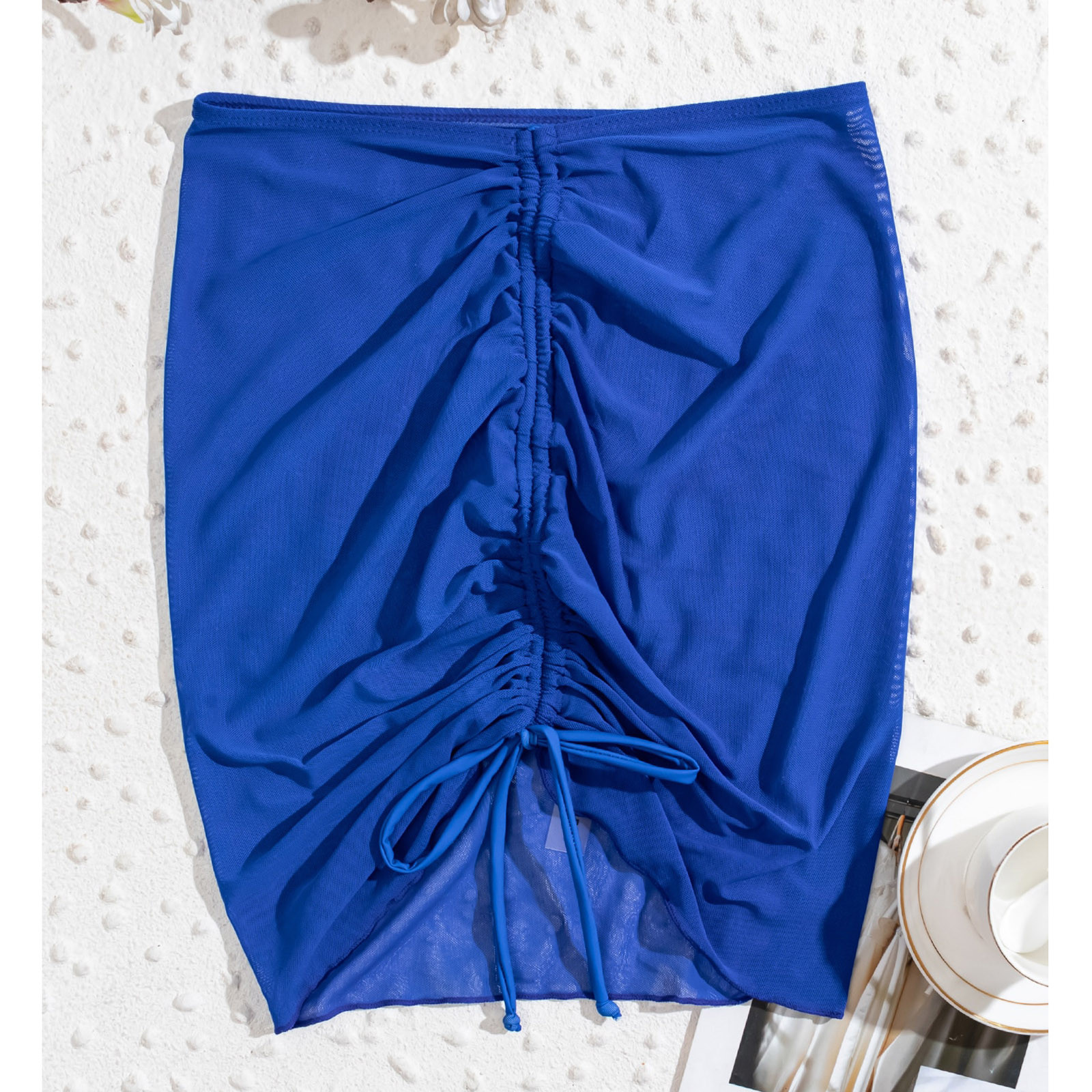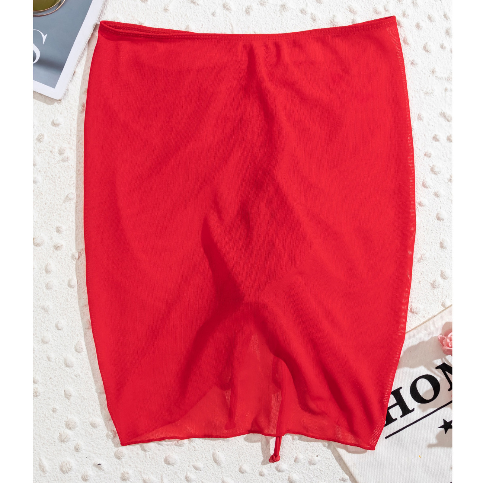 Ruffle Trim Sheer Cover Up Skirt Beach Wraps Cover Ups For Swimwear Mesh Drawstring Cover Up Underwear Beach Outfits For Women