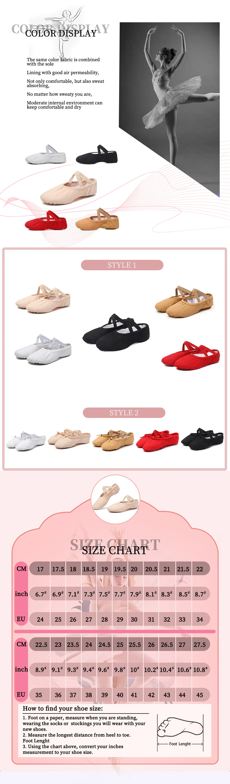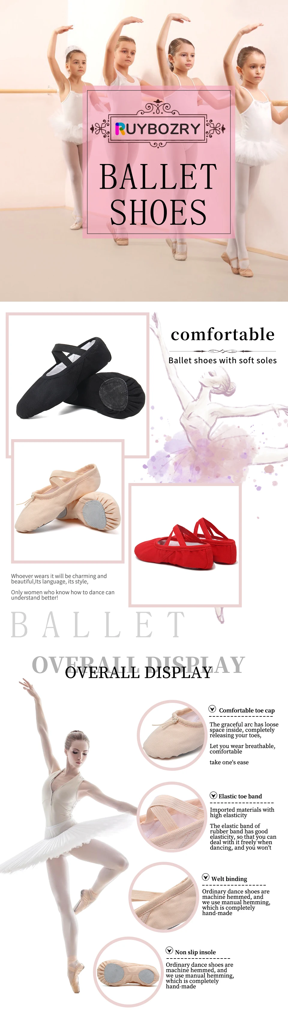 RUYBOZRY Girls Ballet Shoes Canvas Flat Ballet Dancing Slippers Dance Shoes Women Split Sole Children Training Shoes For Ballet