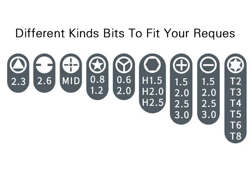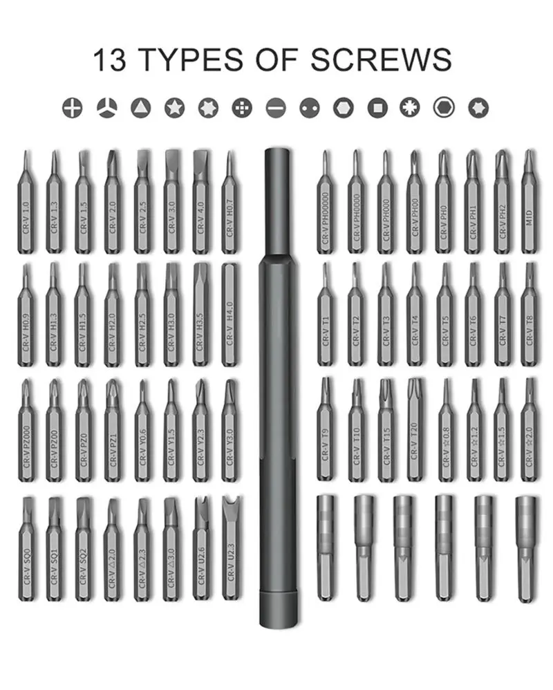 1.62PCs screw bits and one screwdriver, in an plastic package box with magnetism. 2. Easy to operate, durable and portable.