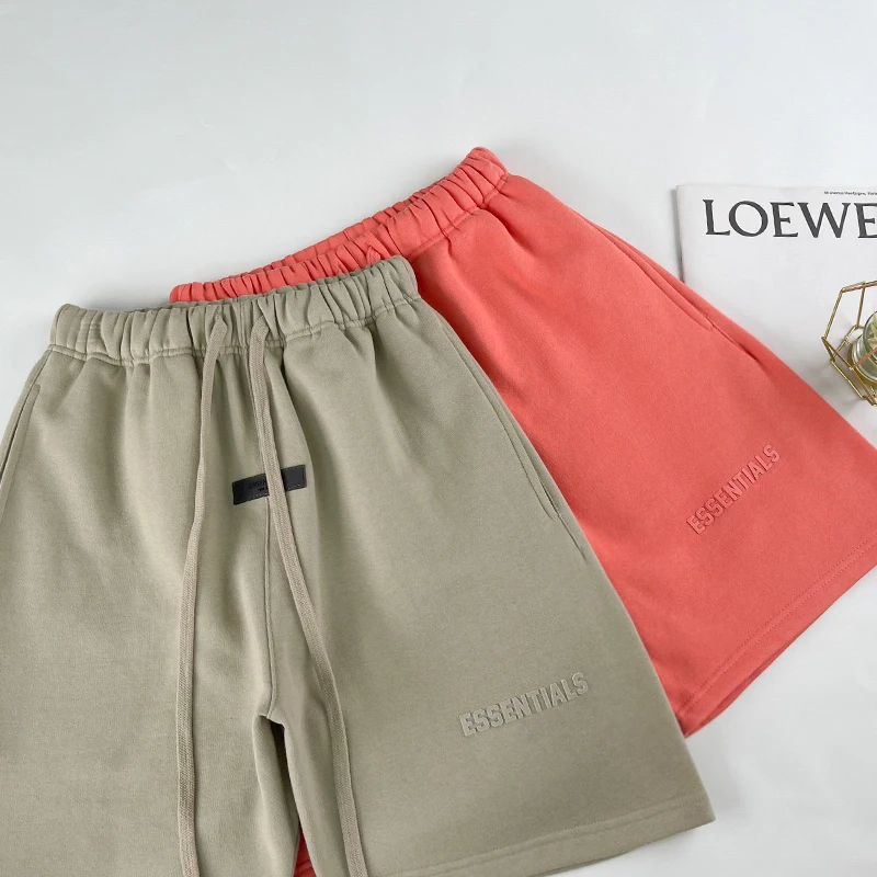 Season 8 Coral Red Essentials Shorts Flocked 3D Printed Letter Logo Fashion Brand Hip-hop Loose Unisex Hoodie Shorts