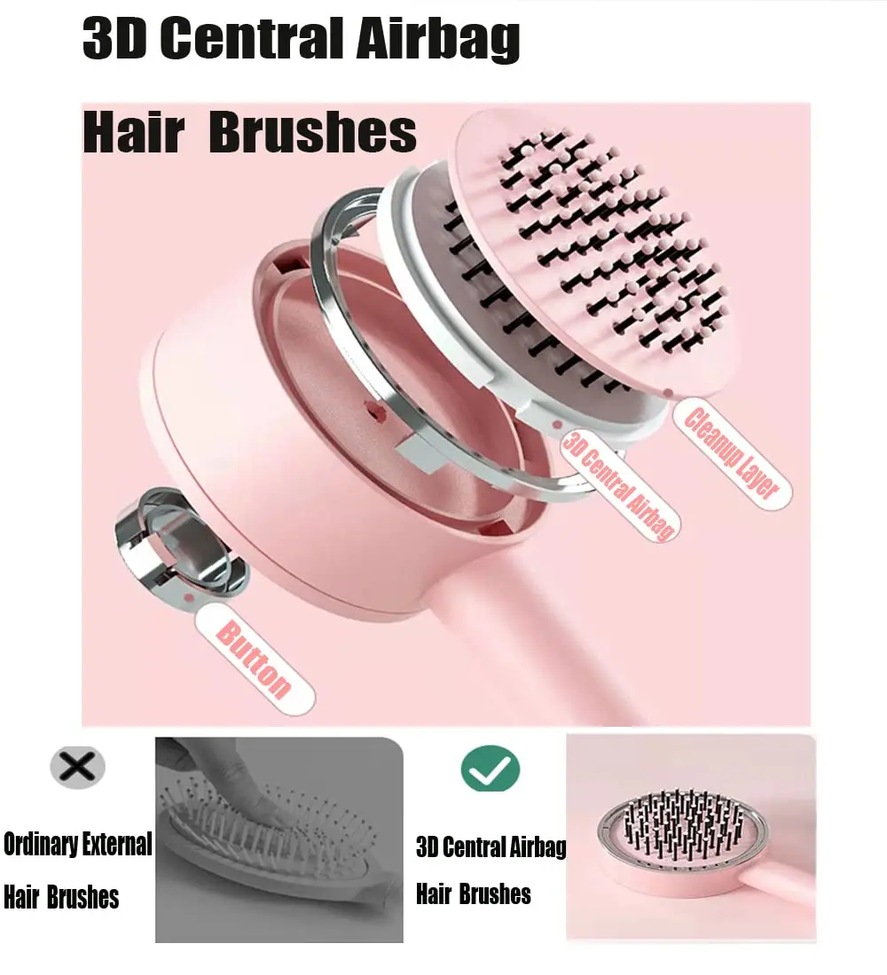 3D air-cushion massage hair brush, specially designed for straight hair, and curly hair, can gently loosen knots without pulling or breaking hair, help you style and groom your hair, and achieve a variety of styling styles. one-click to clean the hair loss remaining on the comb, the cleanup is simple and fast, saving your time.