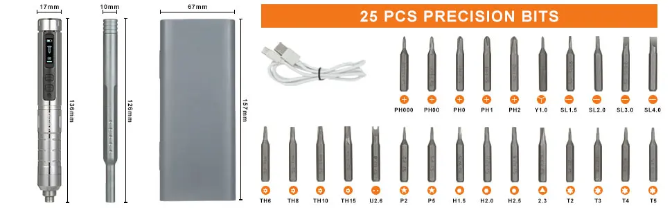 SEQURE SQ-ES126 Mini Smart Electric Screwdriver Power RC Tool Kit Cordless Set with 25 Bits, Rechargeable Portable Magnetic
