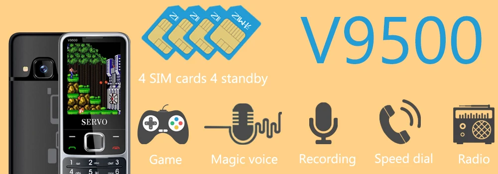 SERVO H8 Mobile Phone 2.8inch 4 SIM card 4 standby Bluetooth Flashlight GPRS 3000mAh Power Bank Phone Russian Language keyboard
