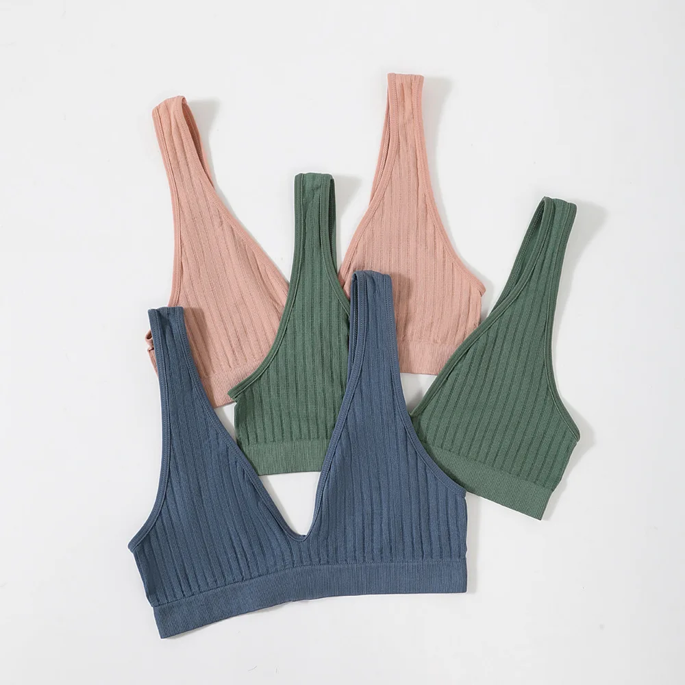 Sexy Seamless Bra Wire Free Brassiere Rib Bralette Women's Plunge Underwear Top Female Comfy Lingerie Small Breasts Intimates