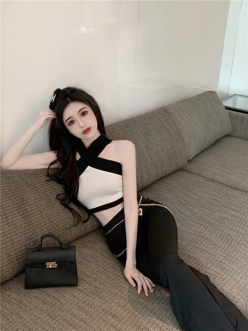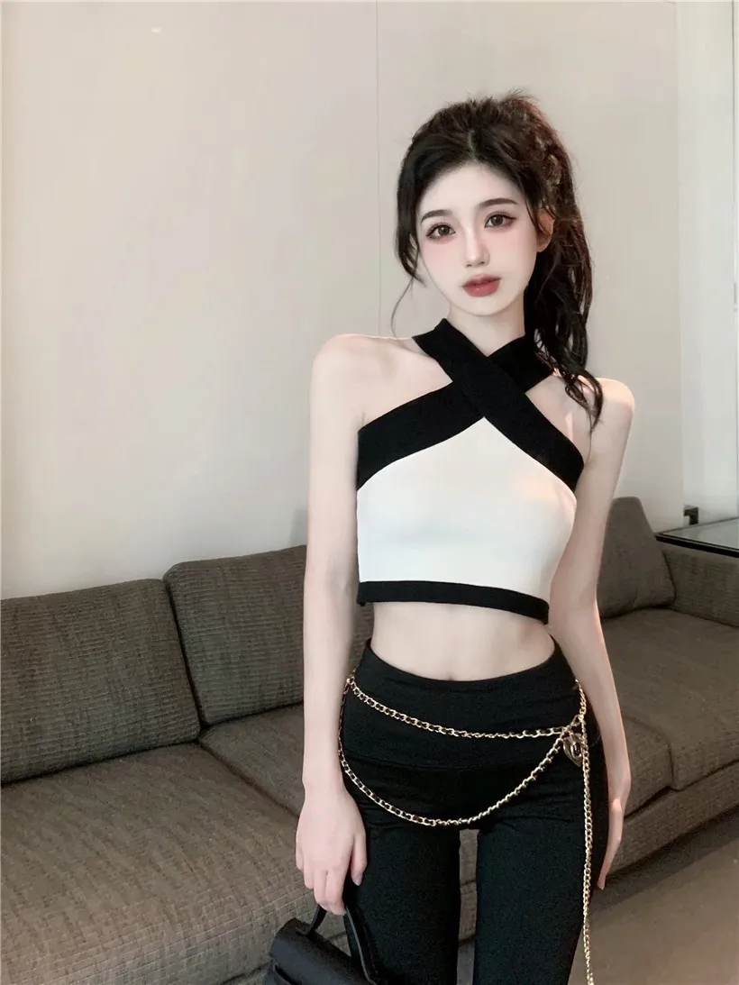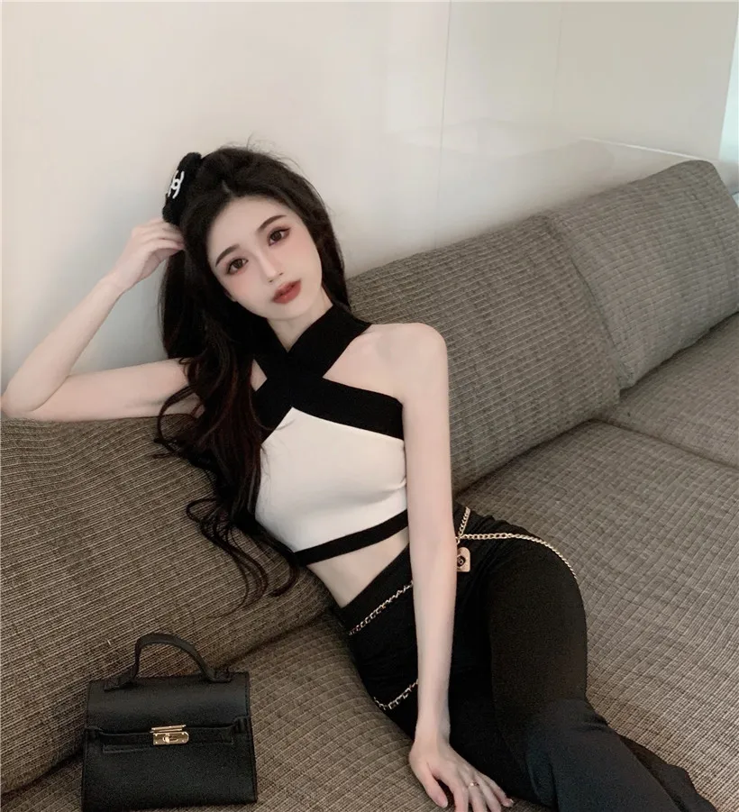 Sexy Short Halterneck Vest Tank Top Women White 2022 Summer Fitness Short Vest Knitted Off Shoulder Sexy Crop Top Women