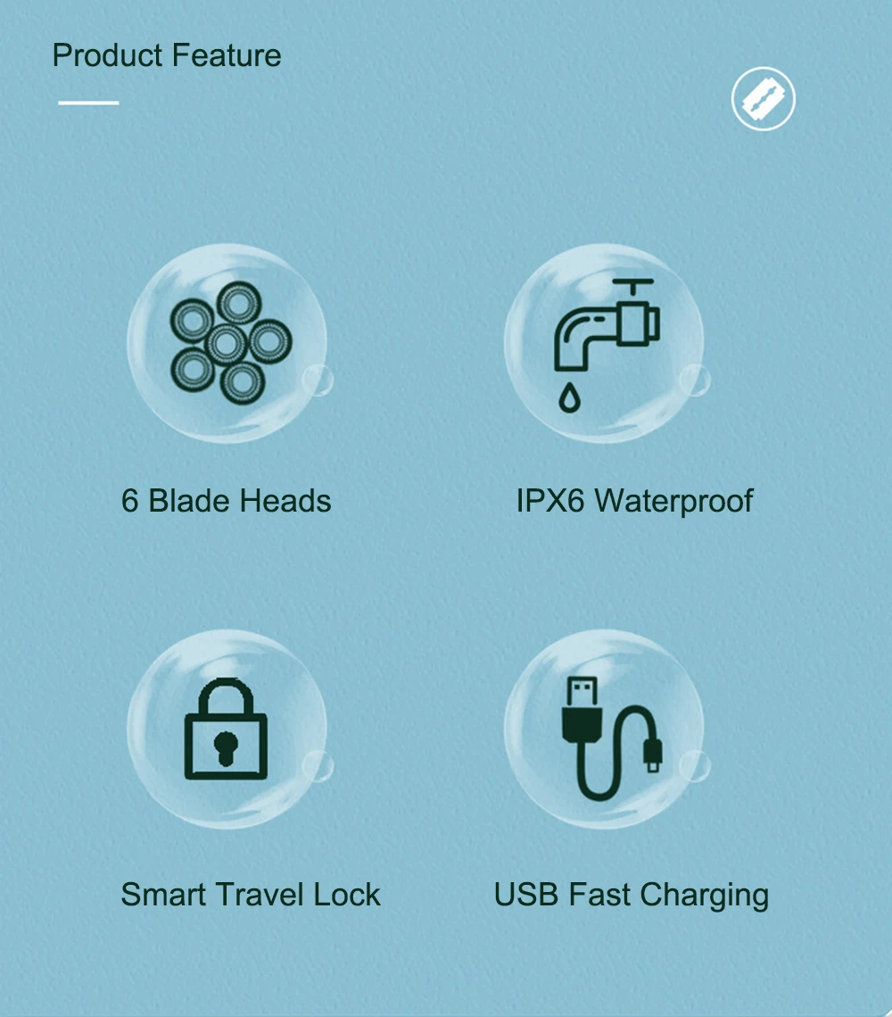 【 6 independent floating blade heads 】:it’s more efficient than single blade head .