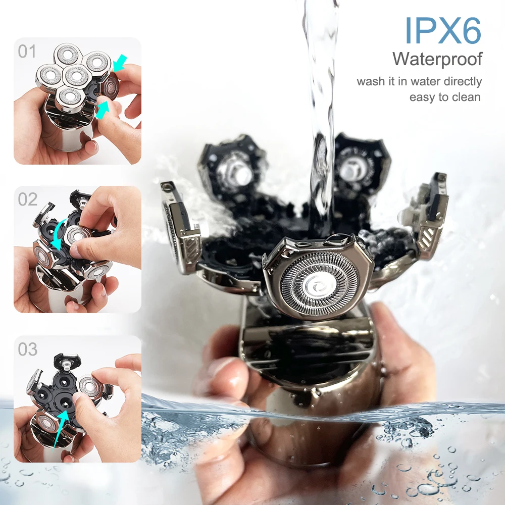 Shaver for Man 6 Floating Heads Electric Shaver Bald Head Hair Trimmer Hair Clipper for Men Barber Razor Shaving Machine