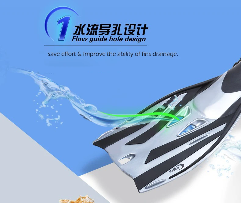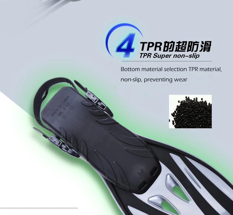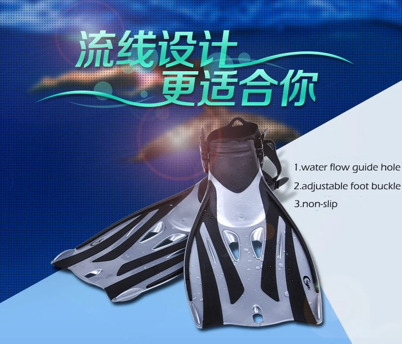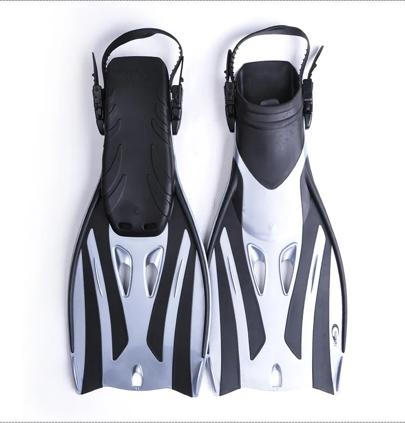 Silver Cool High Quality Open Heel Swimming Flipper TRP Non-slip Adjustable Diving Fins For Underwater Hunting Man & Woman