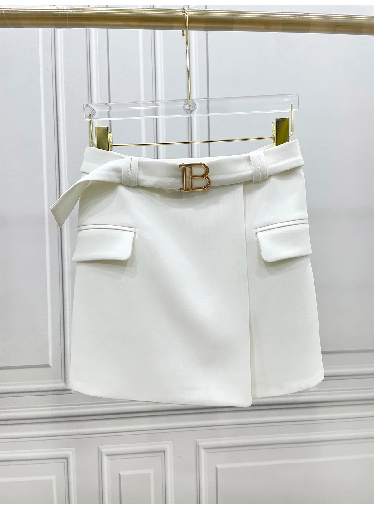 Simple Casual A-line Short Skirt Women's Summer New Fashion Slim Skirt Metal Buckle Solid Color All-match Skirt