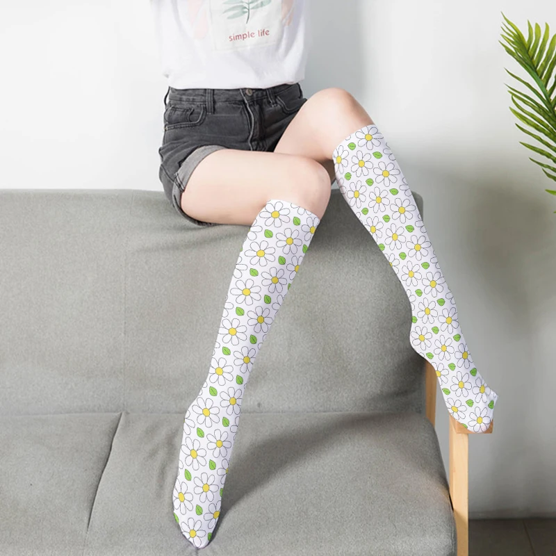 Small Daisy Print Fashion Ladies Calf Stockings Breathable Soft Compression Velvet Socks Harajuku Girls JK Cute Sweet Stockings